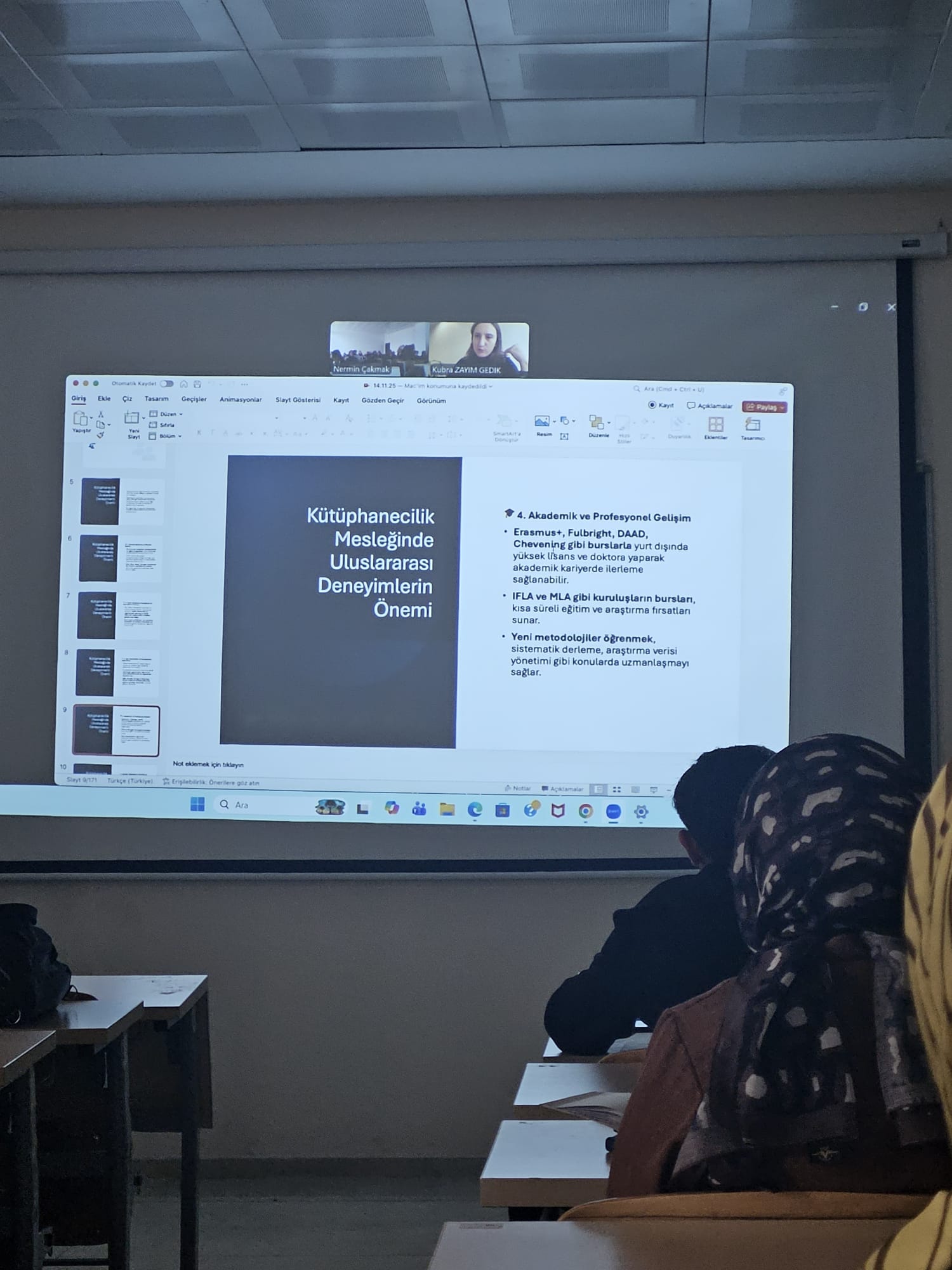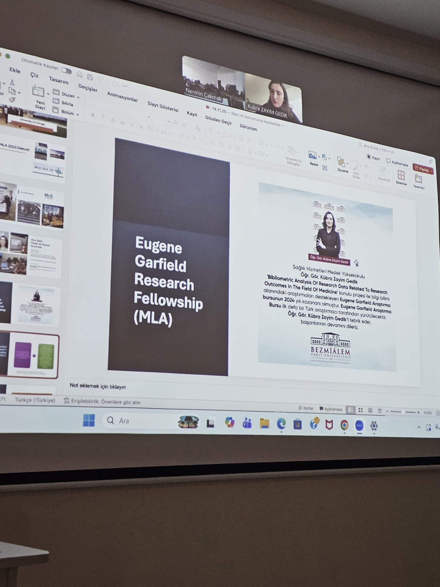 Doç.Dr. Nermin ÇAKMAK tarafından verilen Tıpta Bilgi Yönetimi ve Erişimi dersine Bezmialem Vakıf Üniversitesi, Sağlık Hizmetleri MYO, Tıbbi Hizmetler ve Teknikler Bölümünden kıymetli meslektaşımız Öğr. Gör. Kübra Zayim Gedik konuk oldu. Kübra Zayim Gedik tıp kütüphaneciliği konusundaki akademik kariyeri, tıp alanındaki uluslararası dernekleri ve bu derneklerin sağladığı bursları, kendisinin de bu burslarla katıldığı eğitimleri ve bu eğitimlerin hem kariyerine hem de mesleğe sağladığı olanaklar hakkında vizyon geliştirici değerli bilgiler paylaştı. Ayrıca sağlık bilimi, MeSH, NLM, sağlık bilimi ekosistemi, tıp kütüphaneciliği konularında seminer verdi. Öğrencilerimize ilham kaynağı olan bu kıymetli seminer için zaman ayırdığı ve değerli deneyimlerini ve bilgilerini bizlerle paylaştığı için Sayın Kübra Zayim Gedik’e çok teşekkür ederiz.