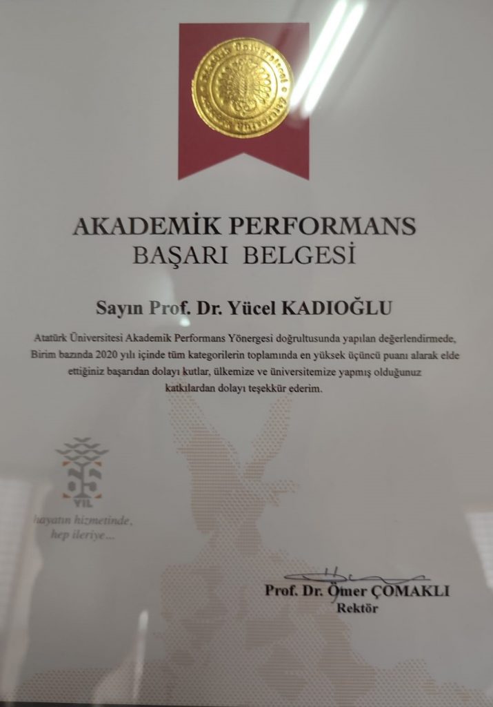 Dekanımız Prof. Dr. Yücel Kadıoğlu, Atatürk Üniversitesi’nin 7 ayrı Akademik performans ölçütlerine göre birim bazında 2020 yılı içinde tüm kategorilerin toplamında, Araştıma ve Çarpan Katkı kategorilerinde üçüncü olarak üç ödül aldı.
