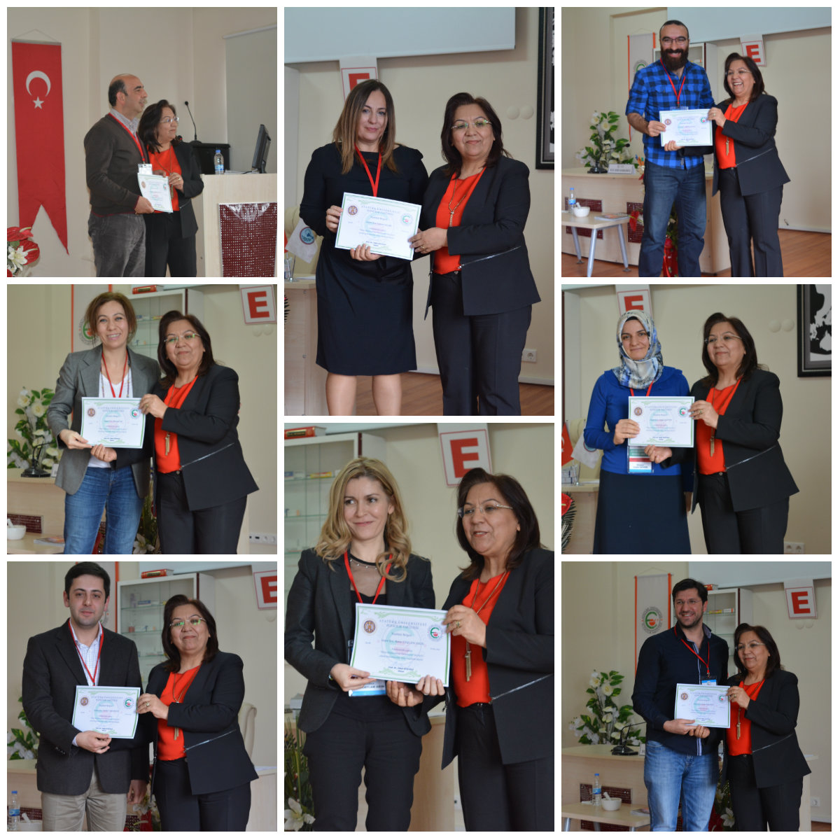 Fakültemizde 5.3.2016 tarihinde ilk kez düzenlenen Hasta Bilgilendirme Yarışması’na katılan öğrencilerimiz Merve ALIZ, Melike GAYAHAN, Ayşe BİLBİL, İnci AĞLAMIŞ ve Elifli Ay Hatun KARAAVCI 6 serbest eczacı, 1 kamu eczacısı ve 1 akademisyen eczacıdan oluşan jürinin önünde hasta bilgilendirme performanslarını sergilediler. Yarışmanın gösterimi 09.03.2016 tarihinde fakültemiz konferans salonunda yapıldı. Jüri üyeleri Ecz. Mahmut UÇAR, Ecz. Canan UÇAR, Ecz. Peyal ÇİL, Ecz. Leyla GÜVEN, Ecz. Fatih SARUHAN, Ecz.Gökbay UÇAR, Ecz. Banu TAYLAN AKIN, Ecz. Sinan BİLGİNER’in yaptıkları değerlendirme sonucunda, 14-17 Nisan 2016 tarihlerinde gerçekleşecek olan XIII. Ulusal Hasta Bilgilendirme Yarışması’nda fakültemizi beşinci sınıf öğrencilerimizden İnci AĞLAMIŞ’ın temsil edeceği belirlendi. Program sonunda yarışmacılara ve jüri üyelerine dekanımız Prof. Dr. Zühal GÜVENALP tarafından belgeleri takdim edildi.