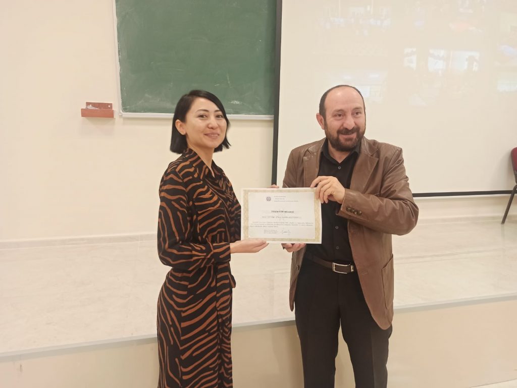 Çağdaş Türk Lehçeleri ve Edebiyatları Bölümü öğretim üyeleri Prof. Dr. Hüseyin BAYDEMİR ve Prof. Dr. Süleyman EFENDİOĞLU’nun takdim konuşmaları ile başlayıp dil içi aktarımları ile devam eden program, misafir öğretim üyeleri Dr. Karlygash ASHIRKHANOVA, Doç. Dr. Dilnoza JAMOLITDINOVA ve Dr. Öğr. Üyesi Möldir İLGİŞEVA’ya Bölüm Başkanı Prof. Dr. Sedat ADIGÜZEL tarafından teşekkür belgesi verilmesi ile sonlandı.
