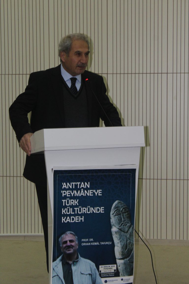 Atatürk Üniversitesi Edebiyat Fakültesi Türkoloji Kulübü, 22 Aralık Perşembe günü saat 17:00’de Edebiyat Fakültesi konferans salonunda Rize Recep Tayyip Erdoğan Üniversitesi Türk Dili ve Edebiyatı bölümü öğretim üyesi Prof. Dr. Orhan Kemal Tavukçu’nun katılımıyla “Ant’tan Peymâne’ye: Türk Kültüründe Kadeh” başlıklı bir konferans düzenledi.