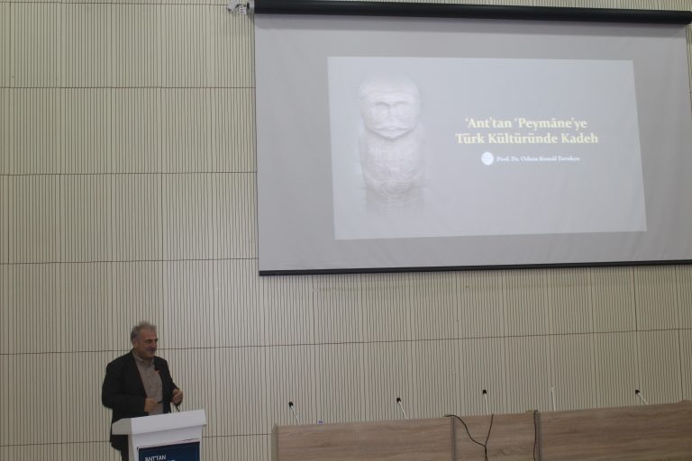 Sayın dekan Prof. Dr. Dilaver Düzgün’ün açılış konuşmasıyla başlayan konferansta arkeolojik bulgularla kadehin tarihi, Türk kültüründeki adları ve Klâsik şiirdeki anlamları irdelendi.