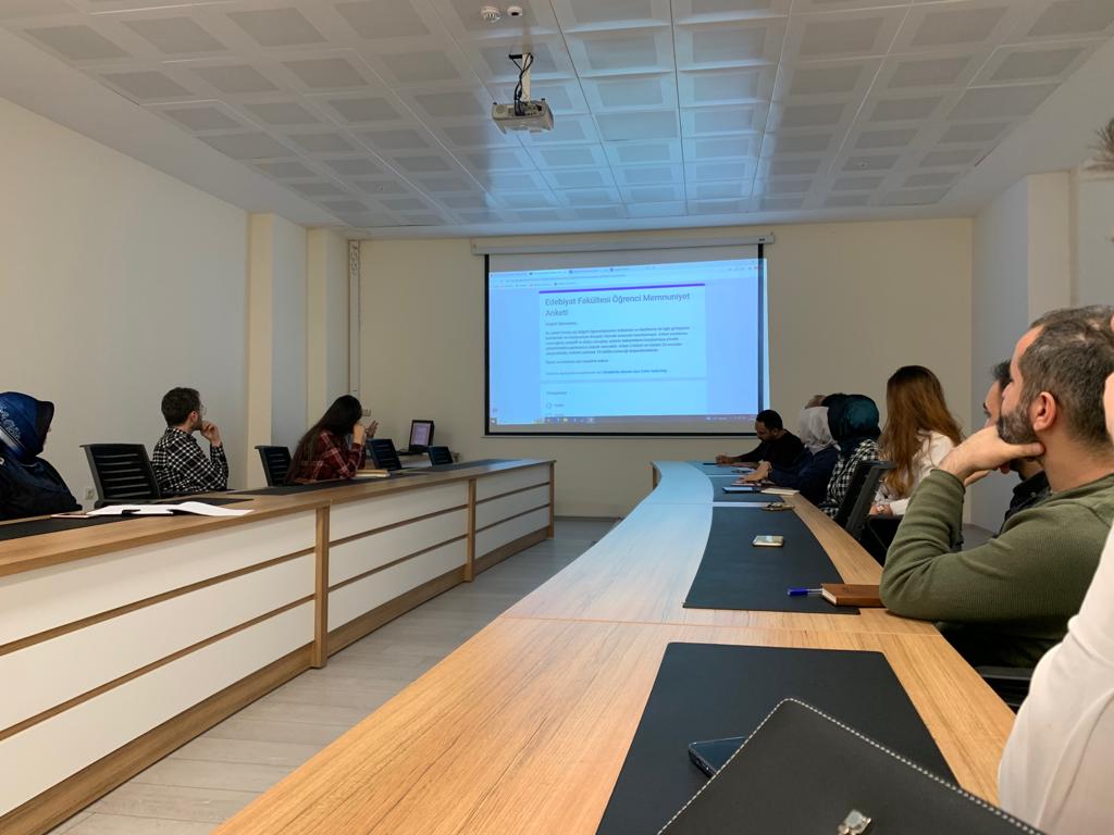 Atatürk Üniversitesi Edebiyat Fakültesi Dekan Yardımcılarımız Prof. Dr. Süleyman Efendioğlu ve Doç. Dr. Firdes Temizgüney başkanlığında fakülte ve bölüm web koordinatörleri ile toplantı gerçekleştirildi. Toplantıda öğrenci/mezun anketleri ve bölüm web sayfalarının işleyişleri ile ilgili bilgi alış verişinde bulunuldu.
