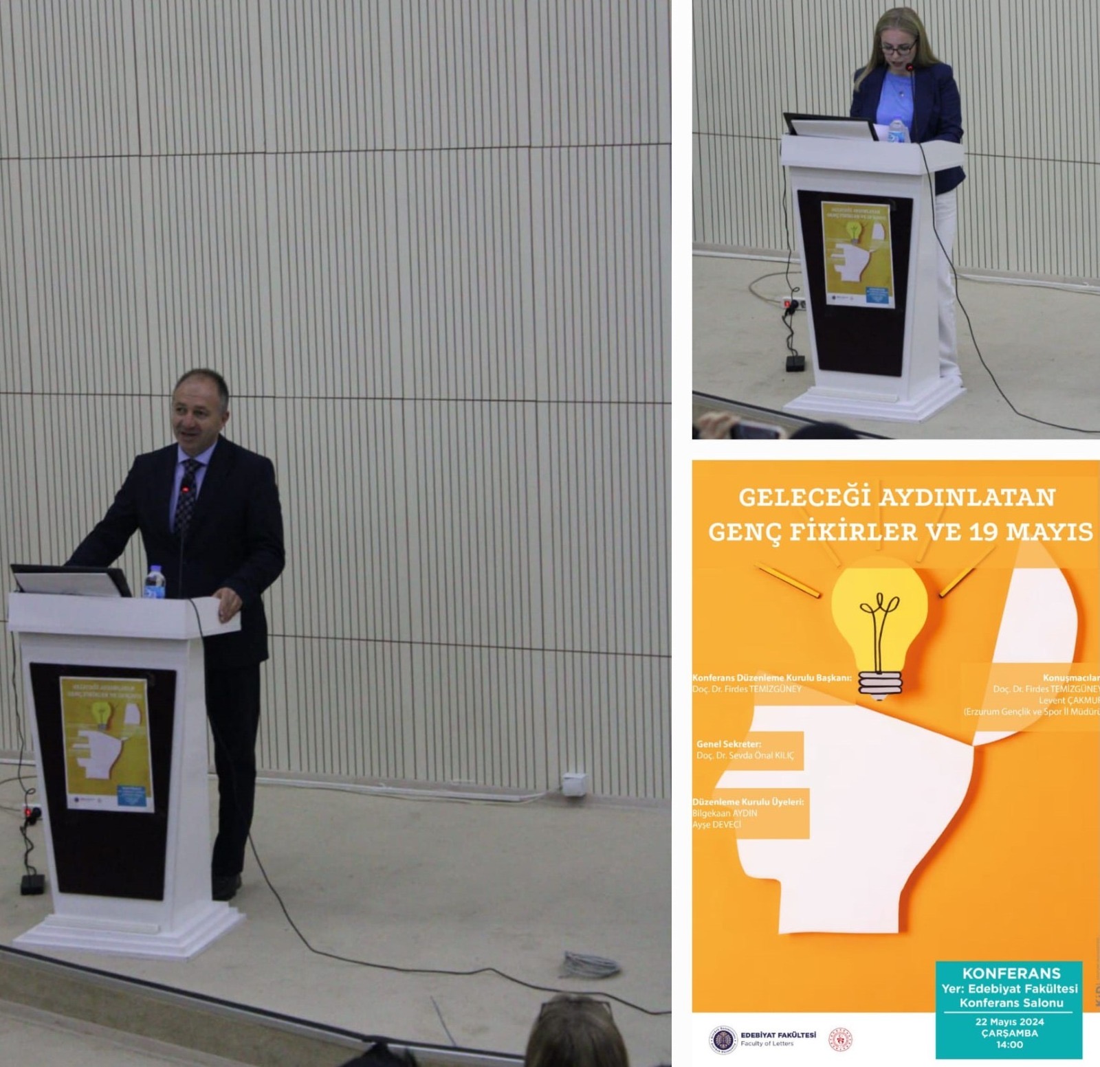 Konferansta; Tarih Bölümü Öğretim Üyesi Doç. Dr. Firdes TEMİZGÜNEY tarafından Mustafa Kemal Atatürk’ün Samsun’a çıktığı ve dolayısıyla Millî Mücadele’nin başlangıcı olarak kabul edilen 19 Mayıs’ın, tarihi değeri ortaya konuldu. Ayrıca 19 Mayıs’ın, nasıl millî bir bayrama dönüştüğü ve bu bayramın gençler ve sporla ilgisi anlatıldı. Erzurum Gençlik ve Spor İl Müdürü Levent ÇAKMUR ise; 19 Mayıs’la anlam kazanan ve bu noktada önemli bir misyon üstlenen Gençlik ve Spor Bakanlığının gençlere, kendilerini geliştirmesi için verdiği olanaklar konusunda bilgilendirme yapıldı.