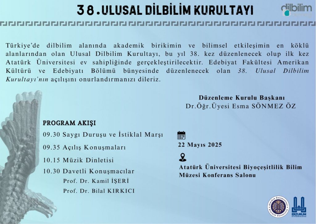 Fakültemiz Amerikan Kültürü ve Edebiyatı Bölümü Öğretim Üyelerinden Dr. Öğr. Üyesi Esma Sönmez Öz’ün Düzenleme Kurulu Başkanlığını üstlendiği kurultay, 22-23 Mayıs 2025 tarihlerinde Atatürk Üniversitesinde gerçekleştirilecektir. Kurultayla ilgili detaylı bilgiye görsellerden ulaşabilirsiniz.