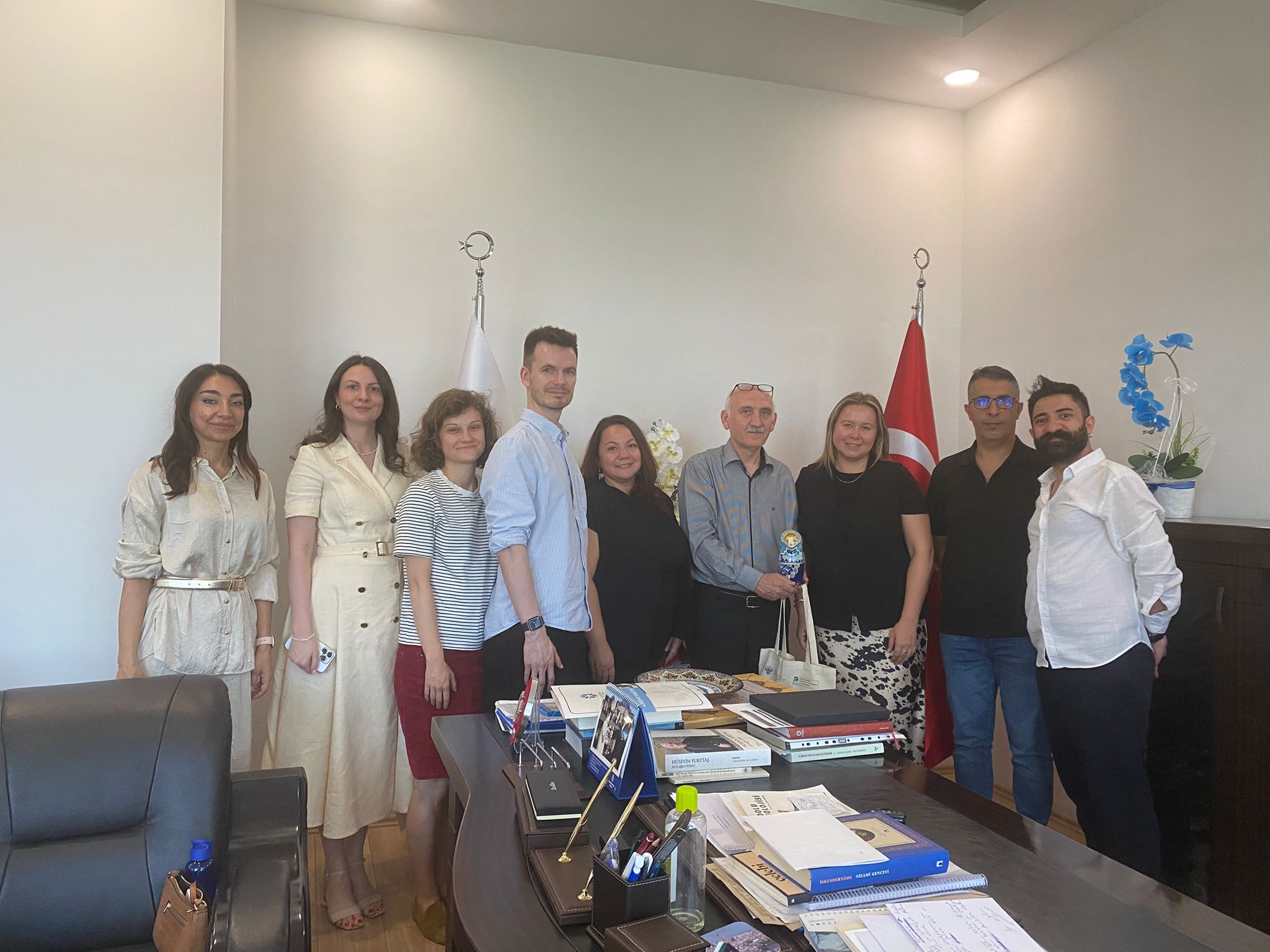 21-27 Temmuz 2025 tarihleri arasında Rusya Federasyonu’nun iki seçkin üniversitesinin öğretim üyeleri, Erasmus ve diğer ikili iş birliği anlaşmaları kapsamında fakültemizi ziyaret etti. Moskova Şehir Pedagoji Üniversitesinde misafir öğretim üyesi olarak görev yapan fakültemiz öğretim üyelerinden Dr. Öğr. Üyesi Hadi Bak’ın öncülük ettiği görüşmede, Moskova Rus Dili Puşkin Enstitüsü Uluslararası İlişkiler Birimi Müdürü Yekaterina Atraşkeviç, Sürekli Eğitim Merkezi Başkanı Yuliya Karmanova, Analitik ve Bilişim Merkezi Başkanı Valeriya İvanko, Uluslararası Proje Birimi Müdürü Yevgeni Plahotin; Moskova Politeknik Üniversitesi Rektör Yardımcısı Yuliya Davidova ve Uluslararası İlişkiler Ofisi Müdürü Alina Andruh, Edebiyat Fakültesi Dekanı Prof. Dr. Süleyman Çiğdem ve Dekan Yardımcısı Doç. Dr. Savaş Eğilmez ile bir araya geldi.