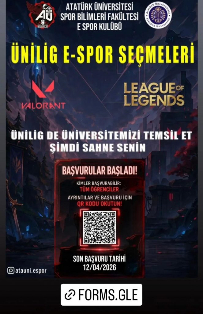Atatürk Üniversitesi Spor Bilimleri Fakültesi, Spor Dostu Kampüs Koordinatörlüğü ve Spor Bilimleri Fakültesi E-Spor Öğrenci Kulübü paydaşlığında düzenlenen turnuva ile, ÜNİLİG E-Spor Türkiye Şampiyonası’nda üniversitemizi temsil edecek takım oluşturulacaktır.