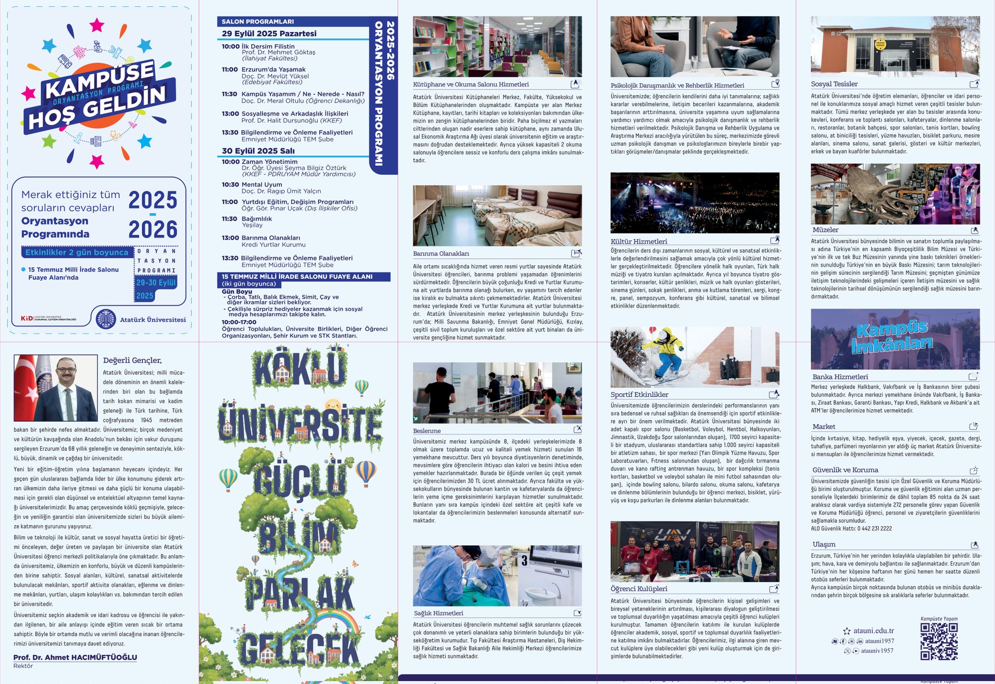 Atatürk Üniversitesi, 2025-2026 akademik yılına “Kampüse Hoş Geldin” Oryantasyon Programı ile başlıyor.