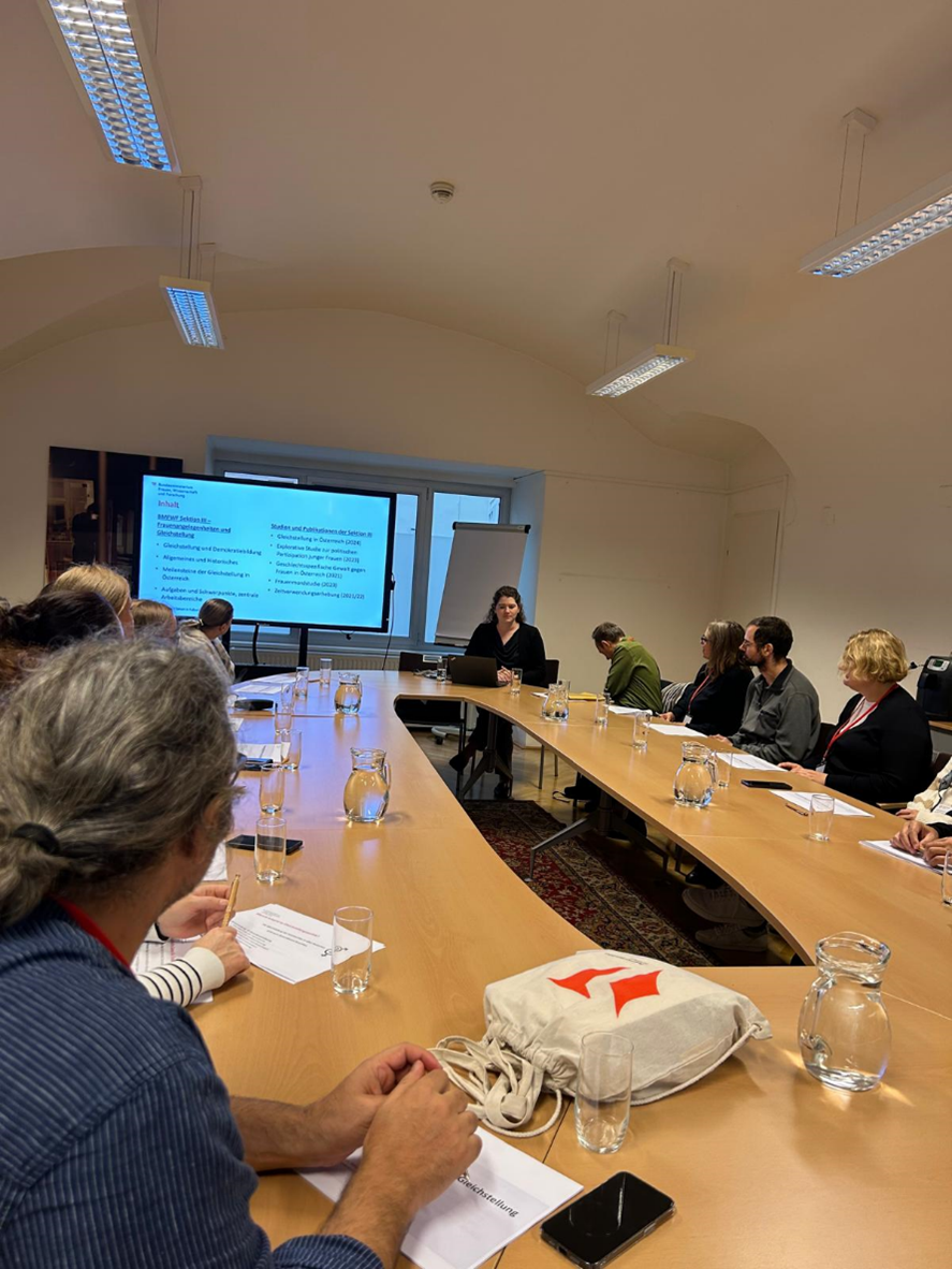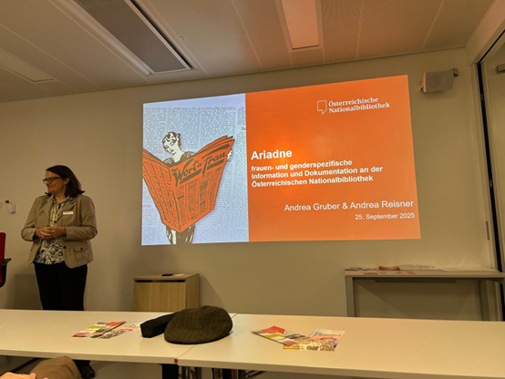 25.09.2025 tarihinde sat 09.30’da “Archive: Gedächtnisspeicher von Kultur und Literatur: Frauen – Frieden – Sicherheit” adlı seminer ekibi Avusturya Ulusal Kütüphanesi’nin Kadına ve Cinsiyete Özgü Bilimsel Portalı “Ariadne”yi ziyaret etti. Andreas Gruber ve Andrea Reisner Bilgi ve Medya Merkezi’nde sunumlarını gerçekleştirdiler. Bütün katılımcılarla birlikte Michl lokantasında yenilen yemeklerden sonra Cornelia Sijaric’in sunumu ile Kadın, Bilim ve Gelişme Bakanlığı’na gidildi.