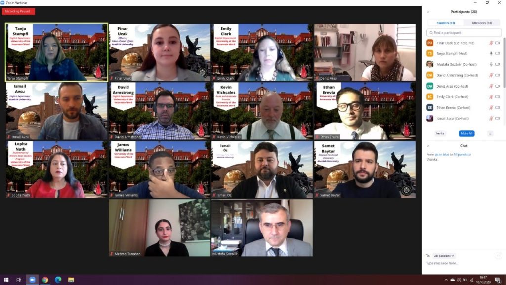 Erasmus Günleri (15-16-17 Ekim 2020) kapsamında Atatürk Üniversitesi ile University of the Incarnete Word’ın ortakla düzenlediği “Unhomeliness and Community During Times of Crisis” konulu Online Sempozyuma Amerikan Kültürü ve Edebiyatı Bölüm Başkanı Dr. Öğr.Üyesi Deniz ARAS “ Homelessness and Alienation in Modern American Drama” adlı çalışmasıyla katılmıştır.
