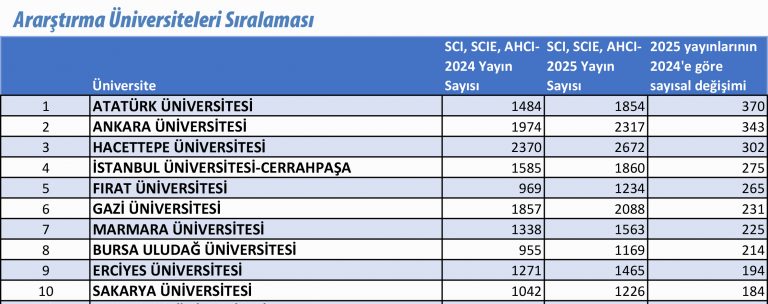 Atatürk Üniversitesi, elde ettiği bu başarıyla hem Türkiye’de hem de uluslararası alanda Araştırma Üniversitesi misyonunu pekiştirirken, bilimsel üretim kapasitesini her geçen yıl daha da ileri taşımayı hedefliyor. Üniversite yönetimi, önümüzdeki dönemde de araştırma odaklı politikalar ve nitelikli akademik çıktılarla bu başarı grafiğini sürdürülebilir kılmayı amaçlıyor.