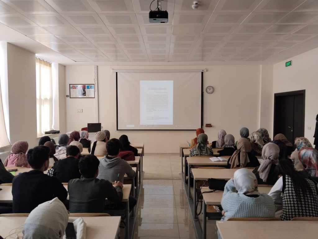 - Bölümümüz öğretim üyelerinden Arş. Gör. Dr. Muhammet Emin Uzunyaylalı tarafından yürütülen proje kapsamında belirlenen gün ve saatte “Cahiliye Şiiri ve Kur’ân Benzerliği İddialarının Tarihî Arka Planı Üzerine Değerlendirmeler” başlıklı bilgilendirme sunumu yapılmış ve Projenin temel amacını oluşturan çalışmalar neticesinde ulaşılan sonuçlar konunun birinci derece muhatapları olan Arap Dili ve Edebiyatı bölümü öğrencilerinin bilinçlenmesi sağlayacak biçimde sunulmaya çalışılmıştır. Bahse konu iddialara temel teşkil eden şiirler kaynak açısından incelenmiş ve ilgili şiirlerde yer alan teknik aksaklıklar ve mevsukiyyet sorunları detaylı bir şekilde izah edilmeye çalışılmıştır.