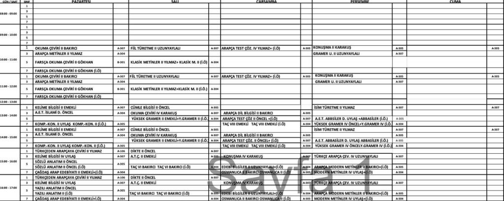 Ramazan Süresince Uygulanacak Olan Bölüm Ders Programı