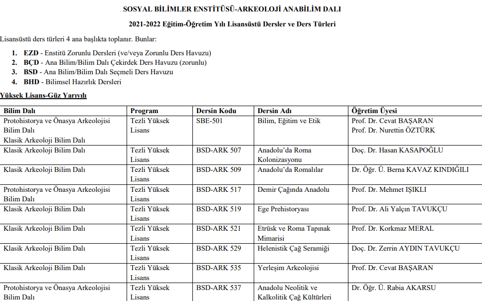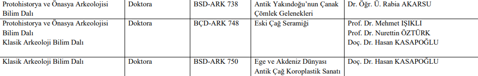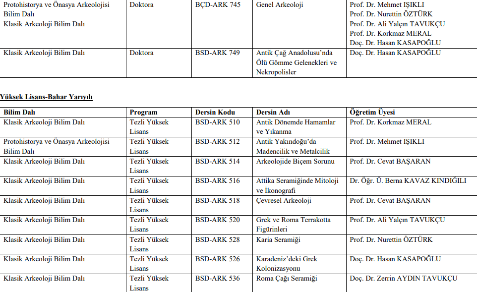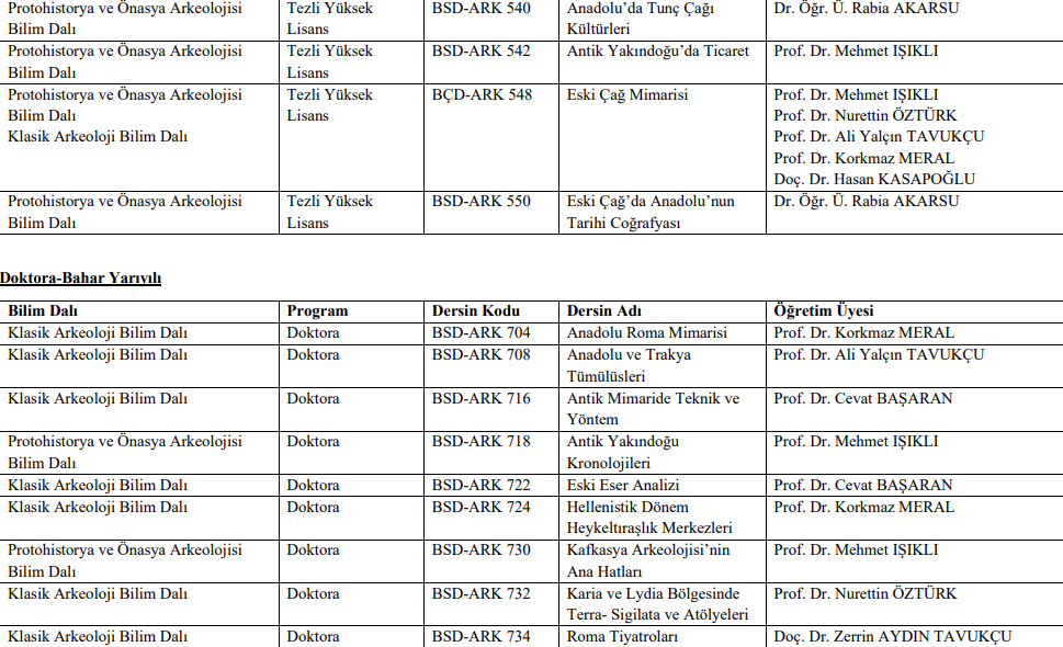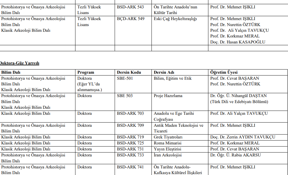 Lisansüstü Ders Listesi