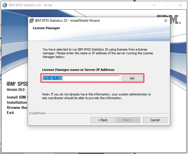 Kurulum başladıktan sonra “Network License” seçeneğini işaretleyip, devamında gelen “License Manager” başlıklı pencerede sunucu adresi olarak: 172.16.7.120 girip SET tıklanmalıdır.
