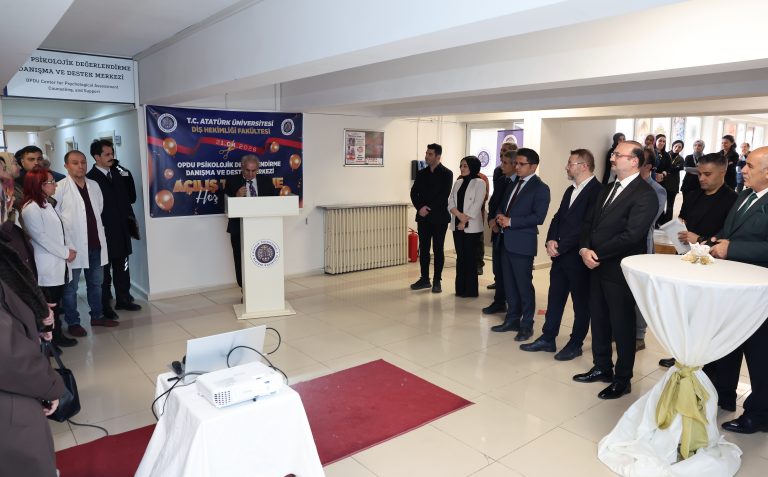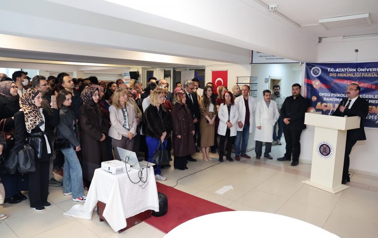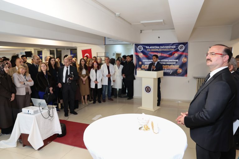 Atatürk Üniversitesi Diş Hekimliği Fakültesi, Türkiye’de alanında öncü nitelik taşıyan iki yapının açılışını büyük bir coşkuyla gerçekleştirdi. Rektör Prof. Dr. Ahmet Hacımüftüoğlu’nun katılımıyla düzenlenen törende; TÜBİTAK destekli OPDU Psikolojik Değerlendirme, Danışma ve Destek Kliniği ile Acil Tıbbi Müdahale Odası resmen hizmete açıldı. Akademisyenlerin, sağlık profesyonellerinin, öğrencilerin ve davetlilerin yoğun ilgi gösterdiği tören, fakültenin bilimsel vizyonunu ve insan odaklı sağlık anlayışını somutlaştıran önemli bir dönüm noktası olarak tarihe geçti.