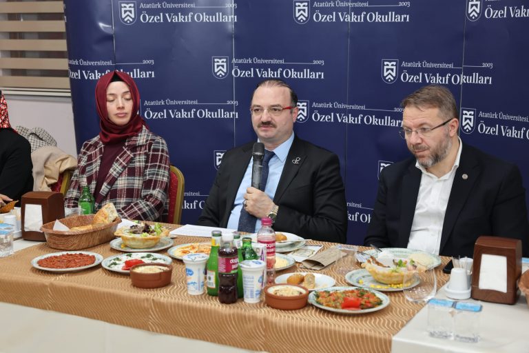 İftar programının ardından konuşan Rektör Prof. Dr. Ahmet Hacımüftüoğlu, Ramazan ayının rahmet ve bereket ikliminde böylesine anlamlı bir buluşmada yer almaktan duyduğu memnuniyeti dile getirdi. Atatürk Üniversitesi çatısı altında faaliyet gösteren Özel Vakıf Okullarının yalnızca bir eğitim kurumu olmadığını vurgulayan Hacımüftüoğlu, bu yapının aynı zamanda güçlü bir vizyonun ve medeniyet tasavvurunun yansıması olduğunu ifade etti.