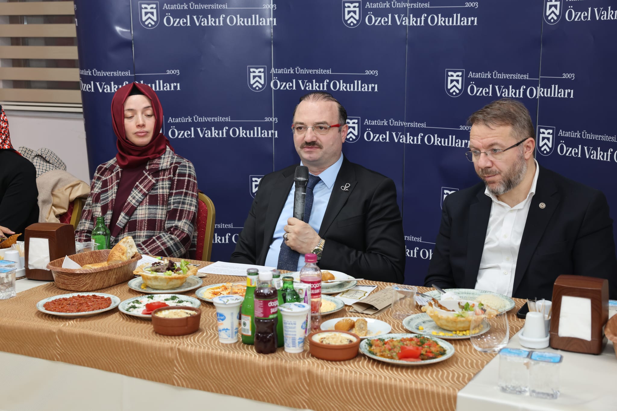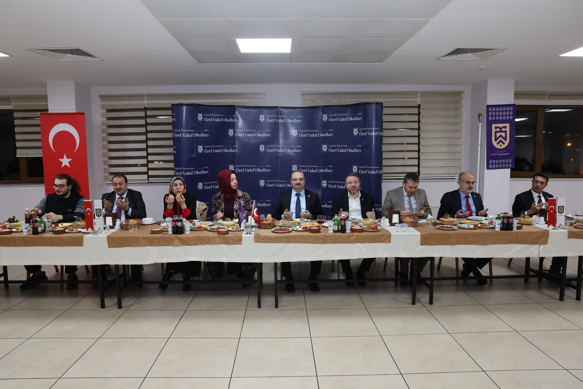Atatürk Üniversitesi Özel Vakıf Okulları Ailesi, düzenlenen iftar programında bir araya geldi. Süheyla & Sıtkı Alp Özel Fen ve Anadolu Lisesinde gerçekleştirilen programa; Atatürk Üniversitesi Rektörü Prof. Dr. Ahmet Hacımüftüoğlu ile eşi Prof. Dr. Esra Hacımüftüoğlu’nun yanı sıra Rektör Yardımcıları Prof. Dr. Hasan Türkez ve Prof. Dr. Reyhan Keleş, Kurumsal İletişim Direktörü Doç. Dr. Sait Sinan Atılgan, Kalkındırma Vakfı Genel Müdürü Erdal Karagülle ile öğretmenler, idari personel ve aileleri katıldı.