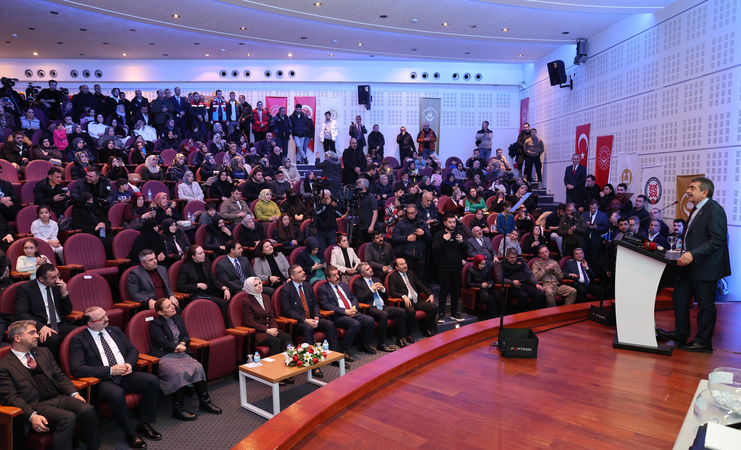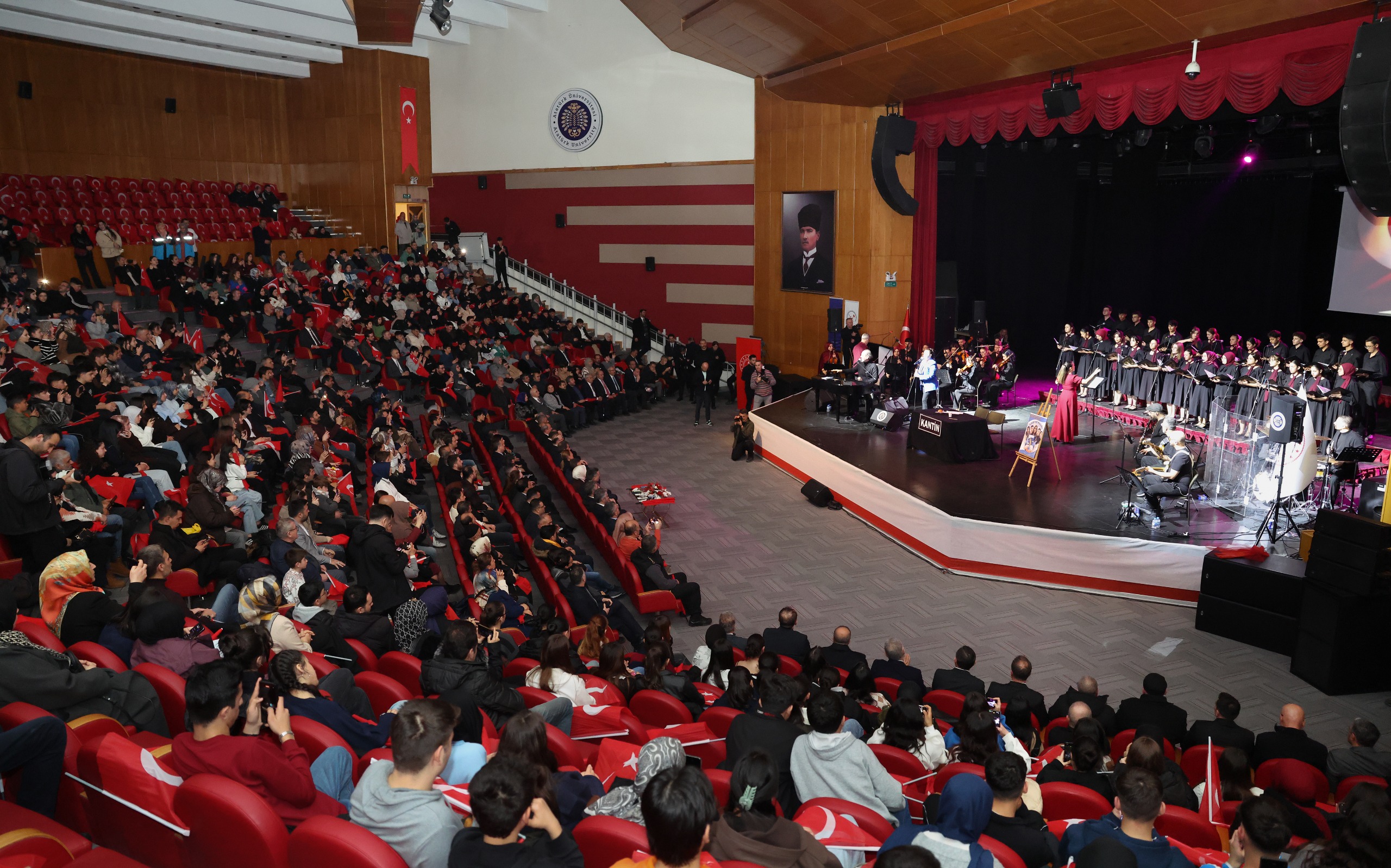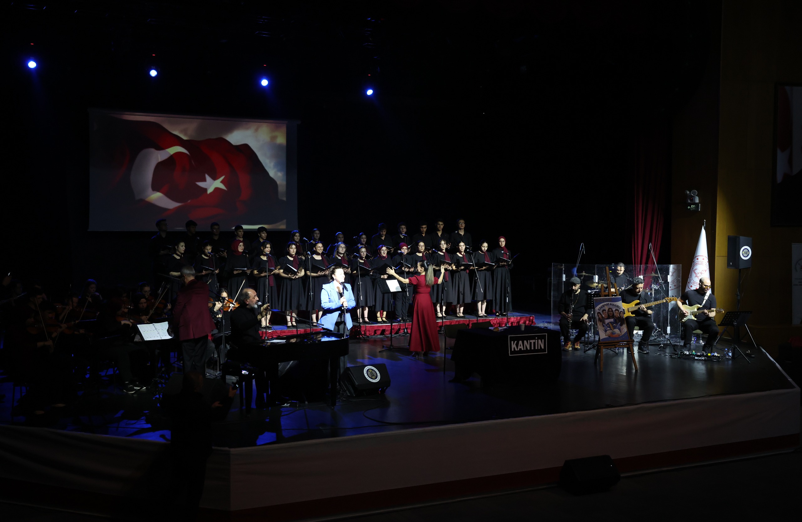 Öğrencilerin tiyatral sunumlarıyla zenginleştirilen performanslar, şiirlere güçlü sahne vurguları kazandırırken; Sayın Yücel Arzen tarafından bestelenen “Türkiye Yüzyılı” şarkısının seslendirilmesiyle salon Türk bayrakları eşliğinde kırmızı beyaza büründü. Katılımcıların coşkuyla eşlik ettiği eser, programa damga vurdu.