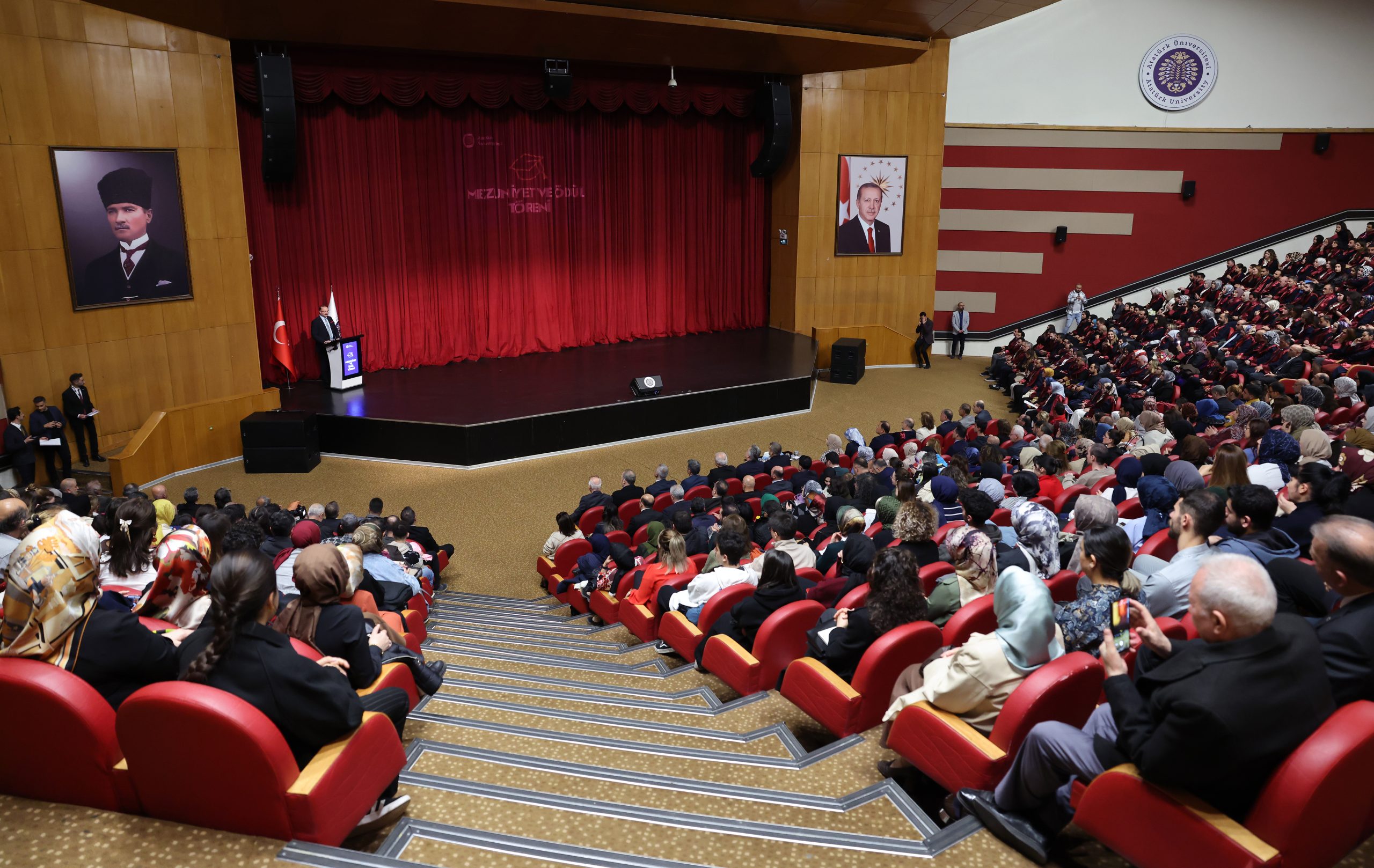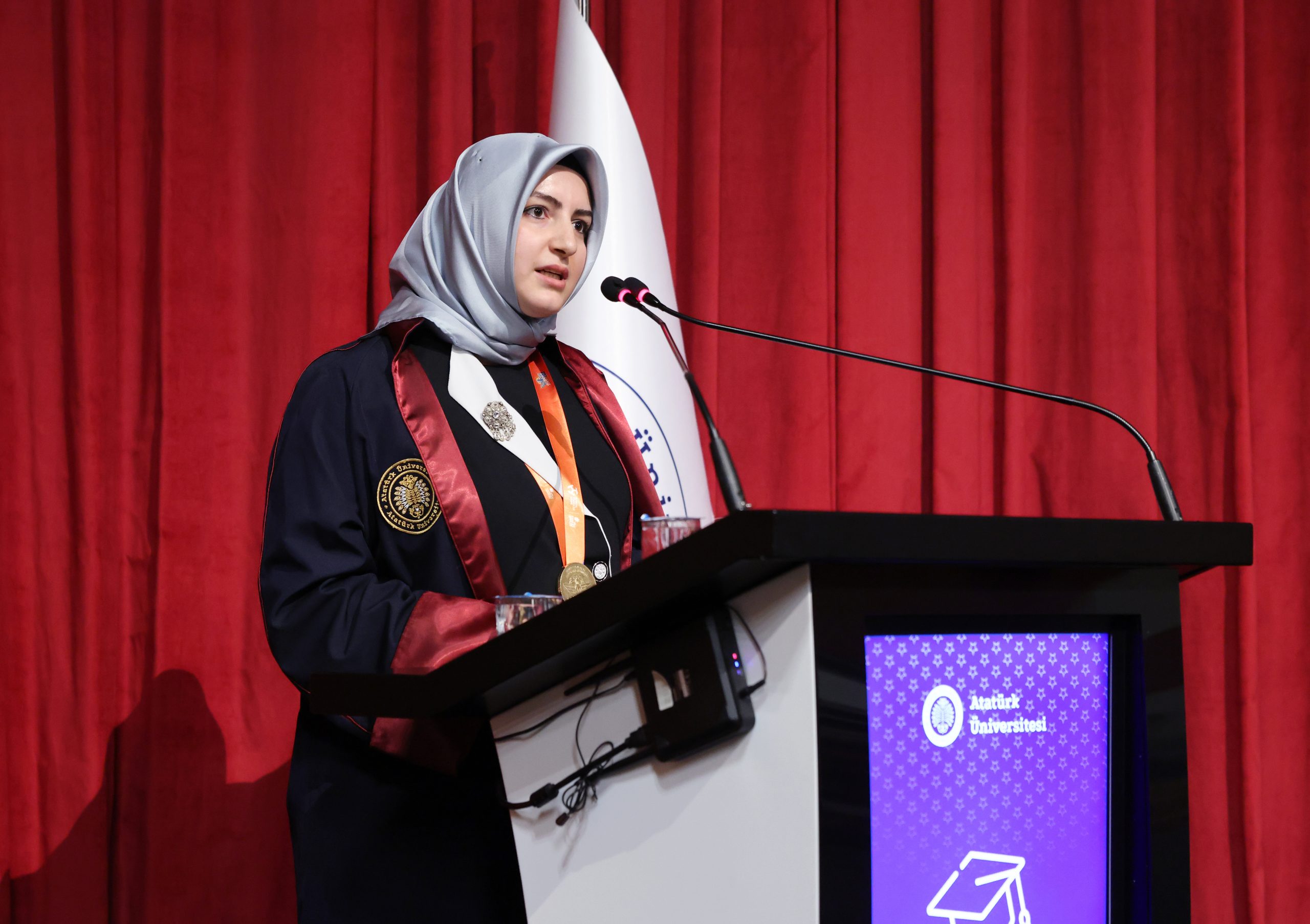 Selamlama konuşmasını gerçekleştiren Rektör Prof. Dr. Ahmet Hacımüftüoğlu, Atatürk Üniversitesinin araştırma üniversitesi kimliğine dikkat çekerek şu ifadelere yer verdi: “Bugün yalnızca bir mezuniyet töreni değil, aynı zamanda bilimin rehberliğinde ilerleyen üniversitemizin güçlü akademik ekosisteminin bir kutlamasını yaşıyoruz. Doktora düzeyinde mezunlarımız, ülkemizin bilimsel ve teknolojik gelişimine yön verecek öncü araştırmacılar olarak aramıza katılıyor. Bilim, yolumuzu aydınlatan en güçlü rehberdir ve bizler bu ışığı her geçen gün daha da çoğaltmak için çalışıyoruz.”