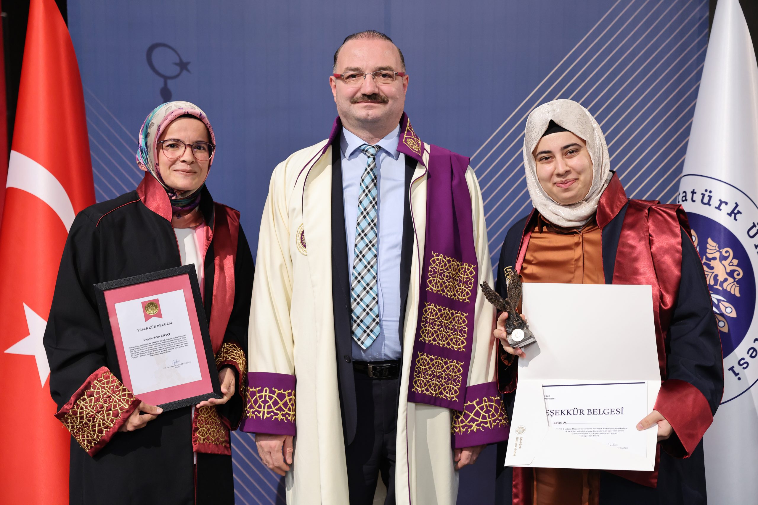 Atatürk Üniversitesi, bilimsel üretkenliği teşvik eden, araştırma temelli öğrenmeyi destekleyen ve ülkemizin geleceğine yön verecek nitelikli akademisyenler yetiştirmeyi amaçlayan vizyonunun önemli bir yansıması olan “Doktora Mezuniyet ve En İyi Tez Ödül Töreni”ni büyük bir coşkuyla gerçekleştirdi.