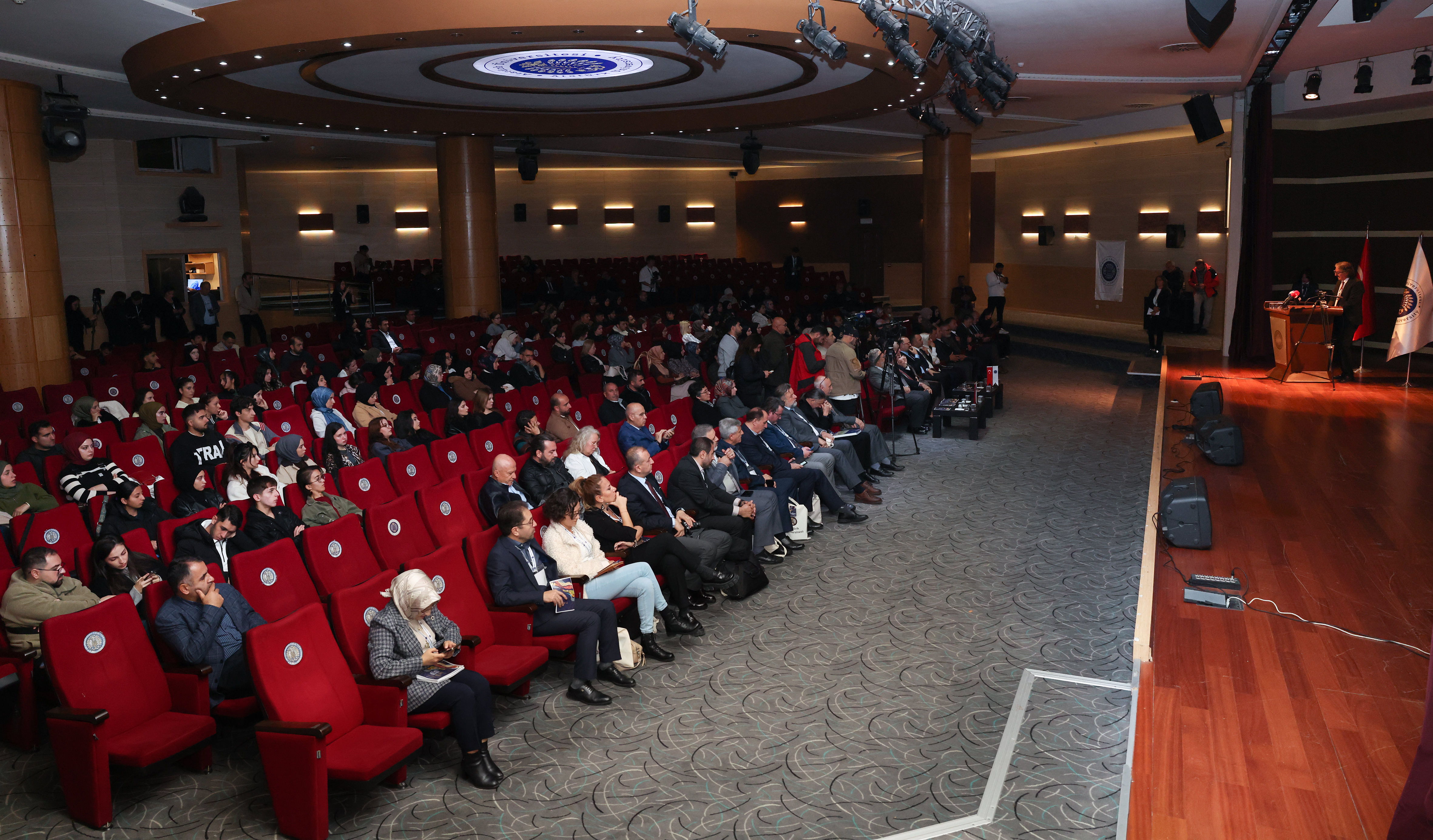 Açılışta konuşan Rektör Prof. Dr. Ahmet Hacımüftüoğlu, kongrenin “İslam’da sanatın anlamı” üzerine evrensel bir tartışma zemini oluşturduğunu belirterek: “İslam sadece bir inanç sistemi değil, aynı zamanda hayatı, güzelliği, hakikati ve estetiği kuşatan bir varlık tasavvurudur. Bu tasavvur, kimi zaman bir hat sanatında, kimi zaman cami avlularında yankılanan ezan sesinde kendini gösterir. Bu kongre, İslam sanatının geleceğe sözü olan dinamik bir bilinç alanı olduğunu ortaya koyacaktır” diye konuştu. Rektör Hacımüftüoğlu ayrıca, Filistin’de yaşanan insanlık dramına da değinerek, “Bu kongre sessizlerin sesi, yıkılan şehirlerin, yetim kalan çocukların dili ve hafızası olmalıdır” ifadelerini kullandı.