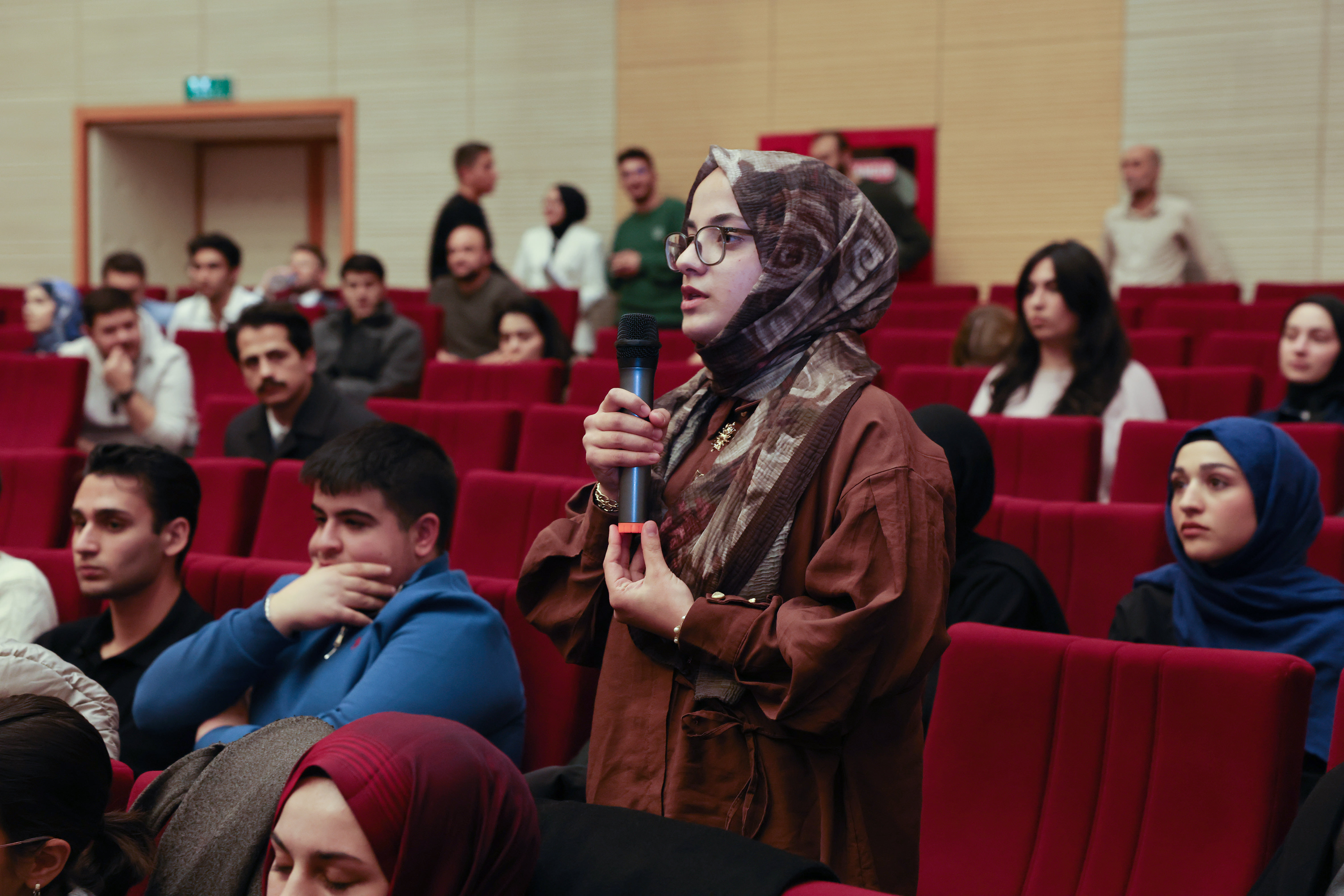 Soru-cevap bölümüyle devam eden etkinlik, öğrencilerin yoğun ilgisi ve aktif katılımıyla sona ererken, AtaÜni Genç Ofis çatısı altında gerçekleştirilen bu tür programların, gençlerin fikirlerini eyleme dönüştürme süreçlerinde önemli bir rol üstlendiği vurgulandı.