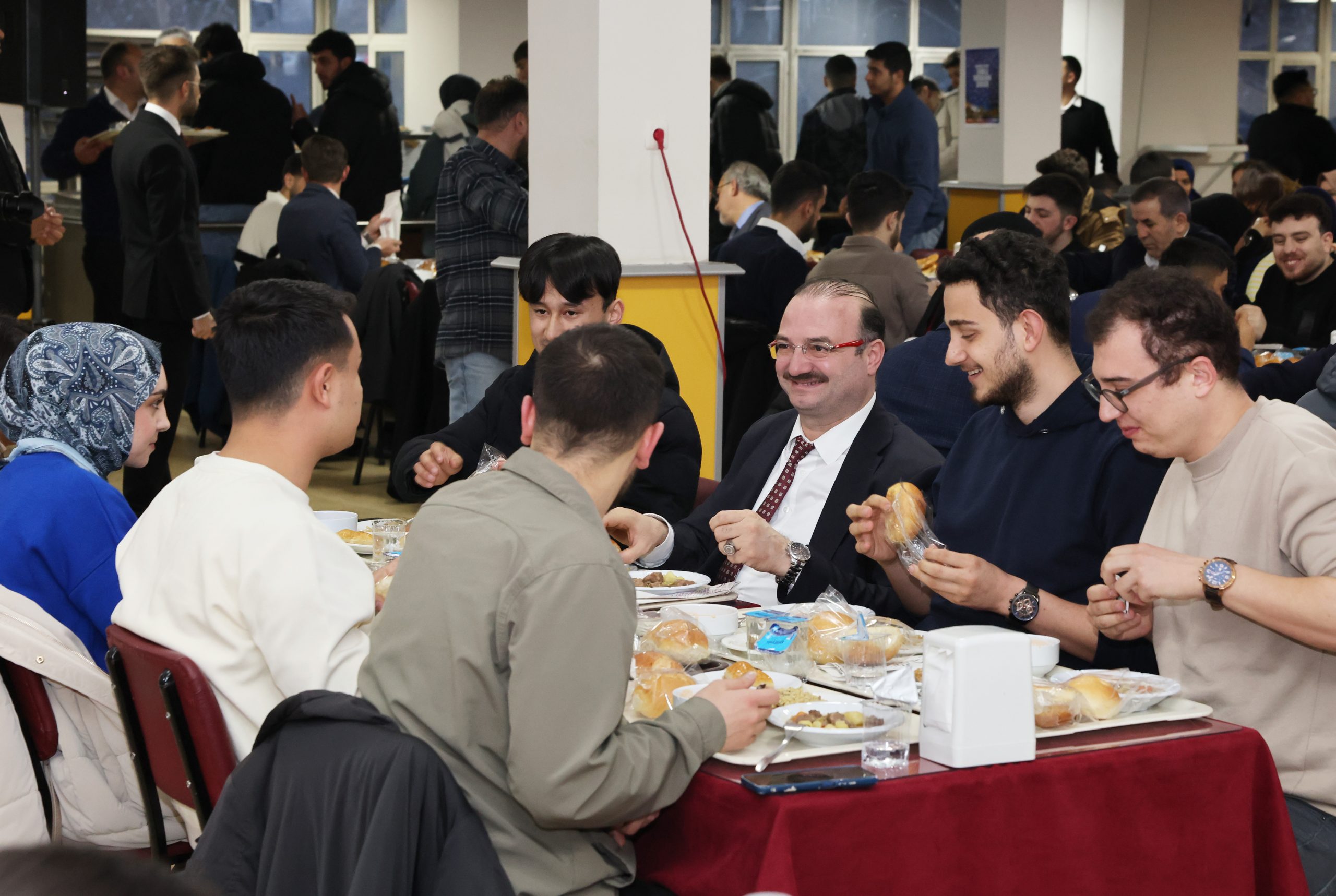 Atatürk Üniversitesi Rektörü Prof. Dr. Ahmet Hacımüftüoğlu, Ramazan ayı dolayısıyla üniversite öğrencileriyle düzenlenen iftar programında bir araya geldi. Merkezi yemekhanede gerçekleştirilen ve yoğun katılımın olduğu programda birlik, beraberlik ve dayanışma vurgusu ön plana çıktı. Rektör Yardımcıları ve birim yöneticilerinin de yer aldığı iftar programında konuşan Rektör Prof. Dr. Ahmet Hacımüftüoğlu,