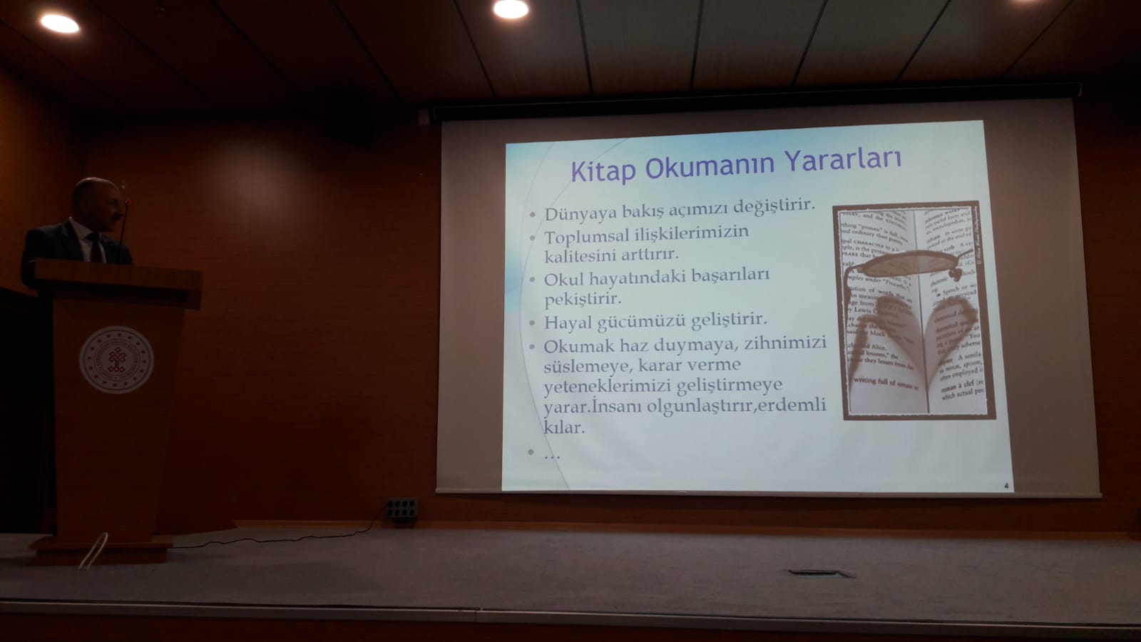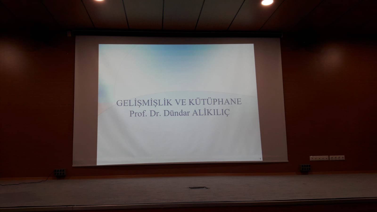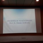 58. Kütüphane Haftası Etkinlikleri kapsamında Bölüm Başkanı Prof.Dr. Dündar ALİKLIÇ “Gelişmişlik ve Kütüphane” konulu konuşma gerçekleştirmiştir. Konuşmaya kütüphane çalışanları, bilgi ve belge yönetimi öğrencileri ve farklı alanda akademisyen ve öğrenciler katılmıştır.