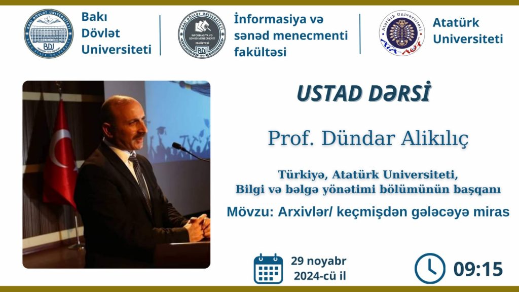 Azerbaycan Bakü Devlet Üniversitesi Bilgi ve Belge Yönetimi Fakültesi, Bartın Üniversitesi Bilgi ve Belge Yönetimi Bölümü, Çankırı Karatekin Üniversitesi Bilgi ve Belge Yönetimi Bölümü ve Kastamonu Üniversitesi Bilgi ve Belge Yönetimi Bölümü’nün işbirliğiyle düzenlenen “Uluslararası Gelenekten Geleceğe Bilgi ve Belge Yönetimi Sempozyumu”nun üçüncüsü Azerbaycan Bakü Devlet Üniversitesi Bilgi ve Belge Yönetimi Fakültesi’nin ev sahipliğinde “Bilgi Yönetimi ve Sürdürülebilir Kalkınma” teması ile 28 -29 Kasım 2024 tarihleri arasında Azerbaycan’ın başkenti Bakü’de gerçekleştirilmiştir.