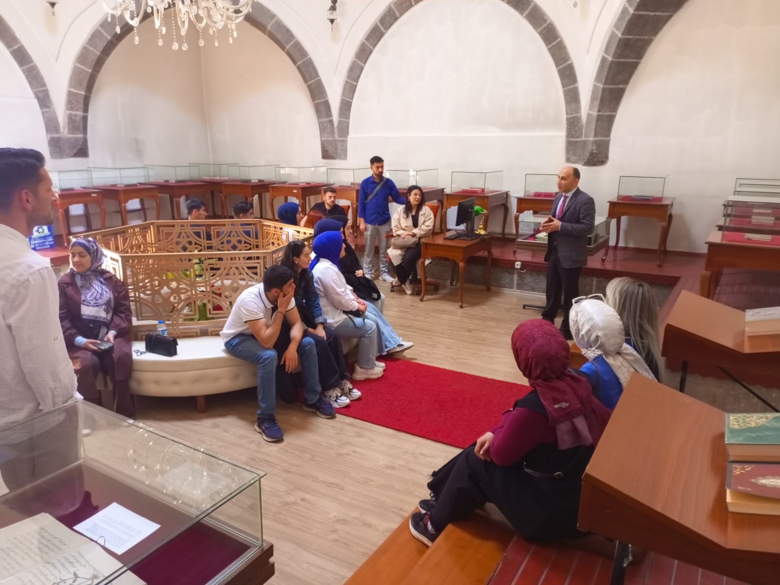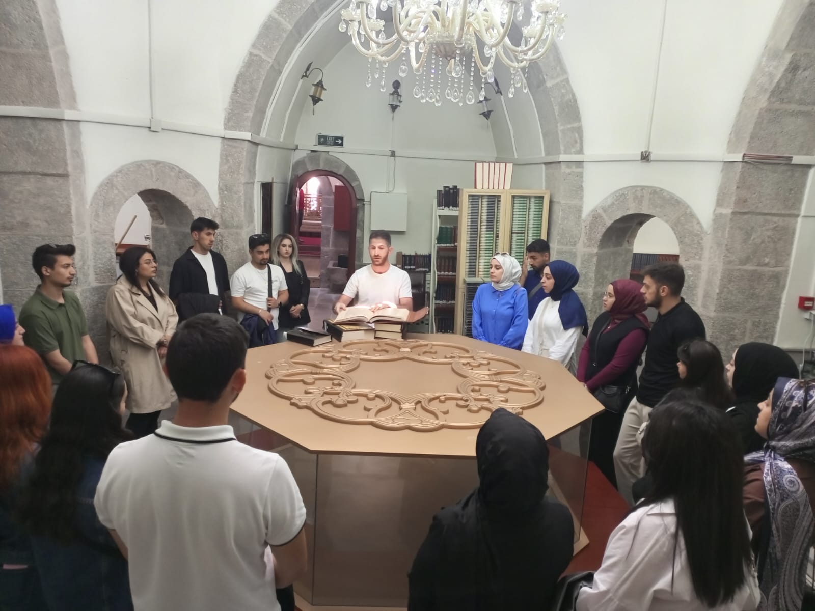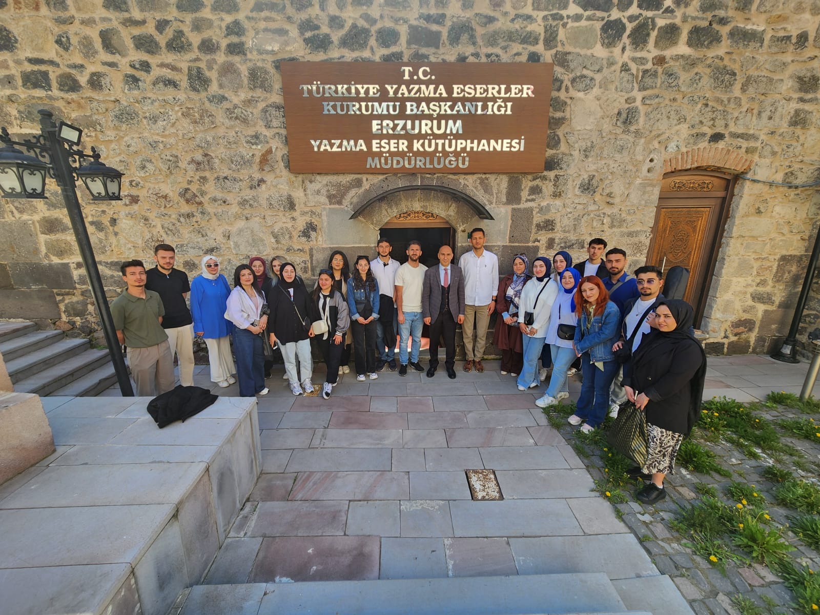 Ders kapsamında bir diğer ziyaret 21 Mayıs 2025 Çarşamba günü Erzurum Yazma Eser Kütüphanesi’ne yapıldı. Kütüphane Müdürü Erdem Ak öğrencilere kütüphane ve yapılan faaliyetler hakkında kıymetli bilgiler paylaştı. Kütüphanenin Yazma Eser Uzmanı Salih Sinanoğlu kütüphanede yer alan kıymetli eserler ve özellikleri hakkında bilgiler verdi.