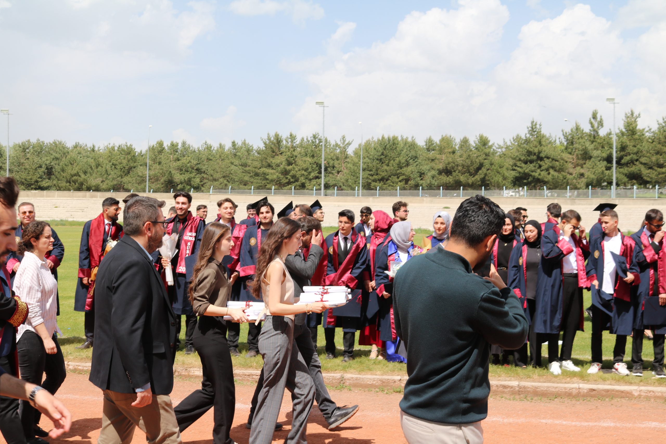 Plaket takdiminin ardından, bölüm öğretim üyeleri mezun olan tüm öğrencilere diplomalarını sundu. Tören, öğrencilerin kep atma seremonisiyle sona erdi. Ailelerin ve akademik personelin katılımıyla gerçekleşen bu anlamlı gün, birçok öğrenci için önemli bir dönüm noktası olarak hafızalarda yer etti.