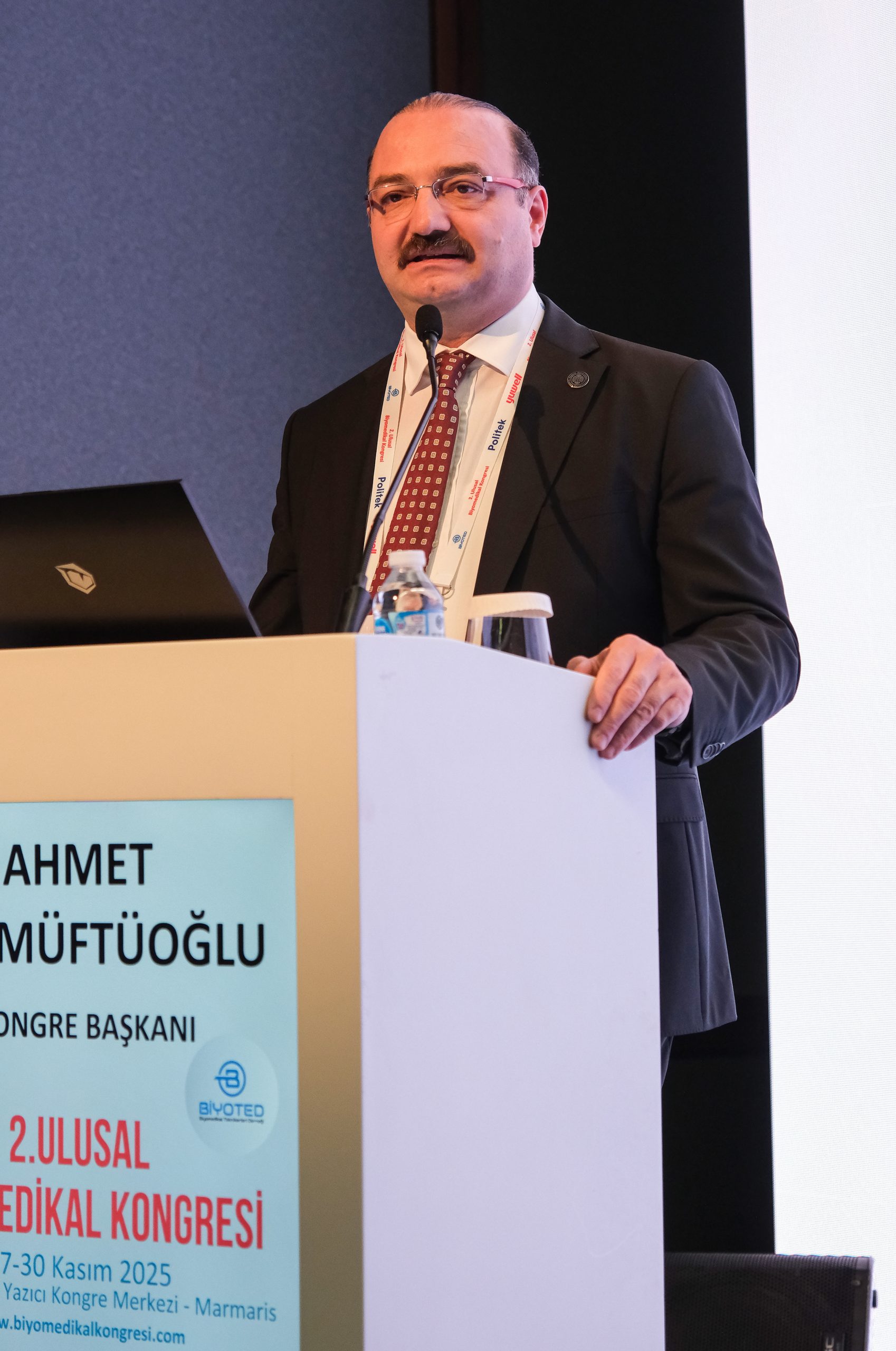 Kongrenin açılış konuşmasını gerçekleştiren Rektör Prof. Dr. Ahmet Hacımüftüoğlu, etkinliğin Türkiye’nin biyomedikal konumunu güçlendiren stratejik bir platform olduğunu vurguladı. Hacımüftüoğlu: “Bu kongreyi, bilimin ve teknolojinin ışığında, sektörümüzün geleceğini şekillendirmek adına bir köprü olarak tasarladık. Geçtiğimiz yılki başarımızın üzerine, bu sene de bilgi alışverişini, bilimsel iş birliklerini ve yaratıcı fikirlerin filizlenmesini teşvik eden bir platform kurmayı hedefledik” ifadelerini kullandı.