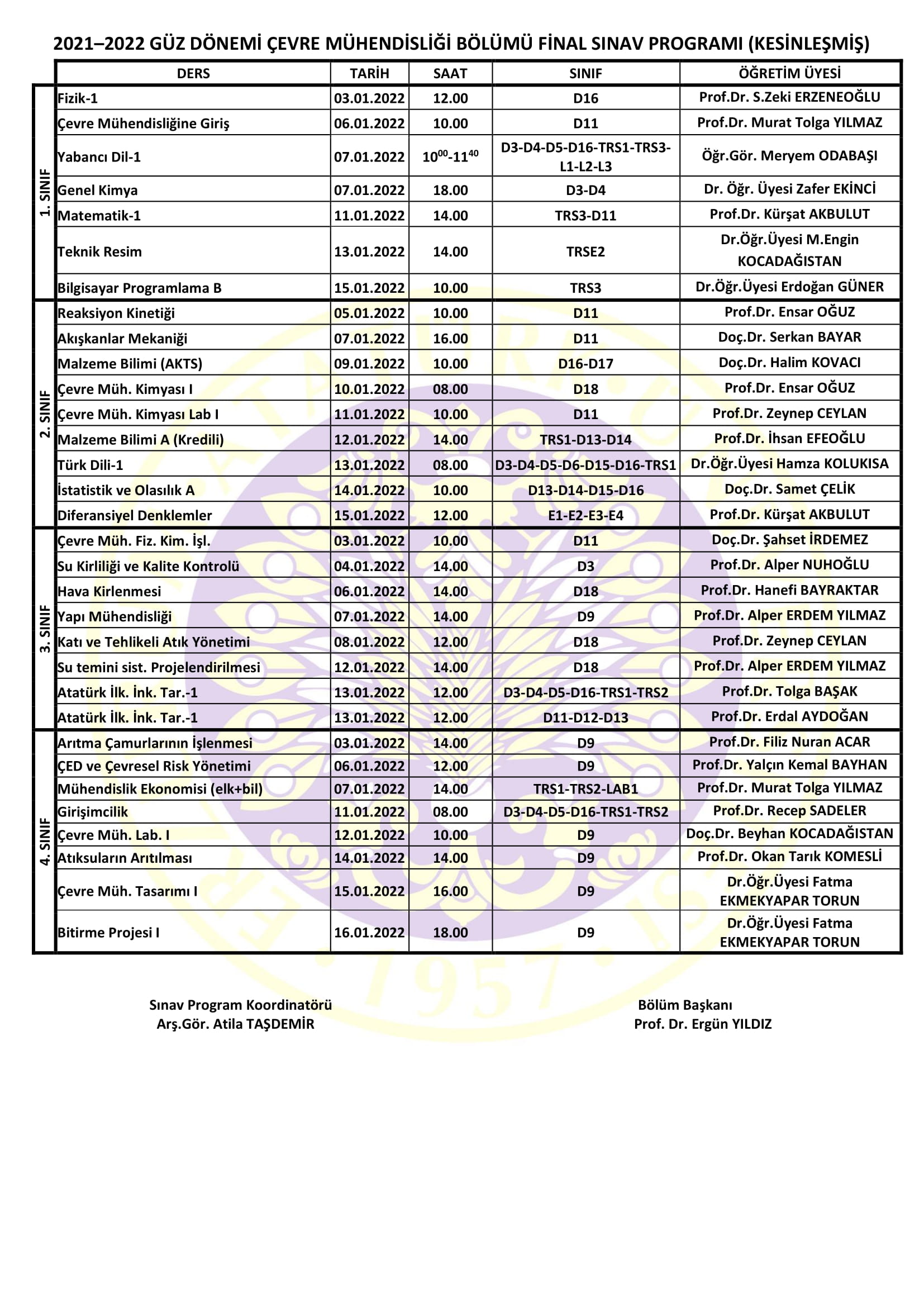Sınav programı (pdf formatı için tıklayınız)