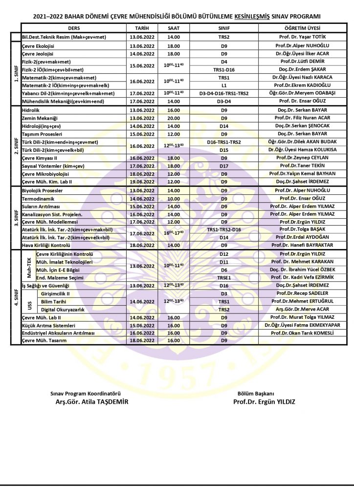 13 Haziran 2022 Bütünleme sınav programı(KESİNLEŞMİŞ) 2021-22 Bahar Yy. Bütünleme kesinleşmiş sınav programı ektedir.