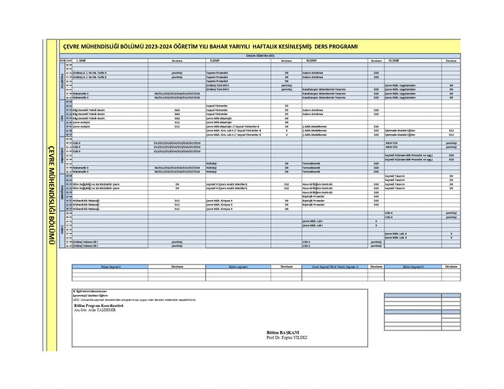 2023-24 Bahar Yy Ders Programı