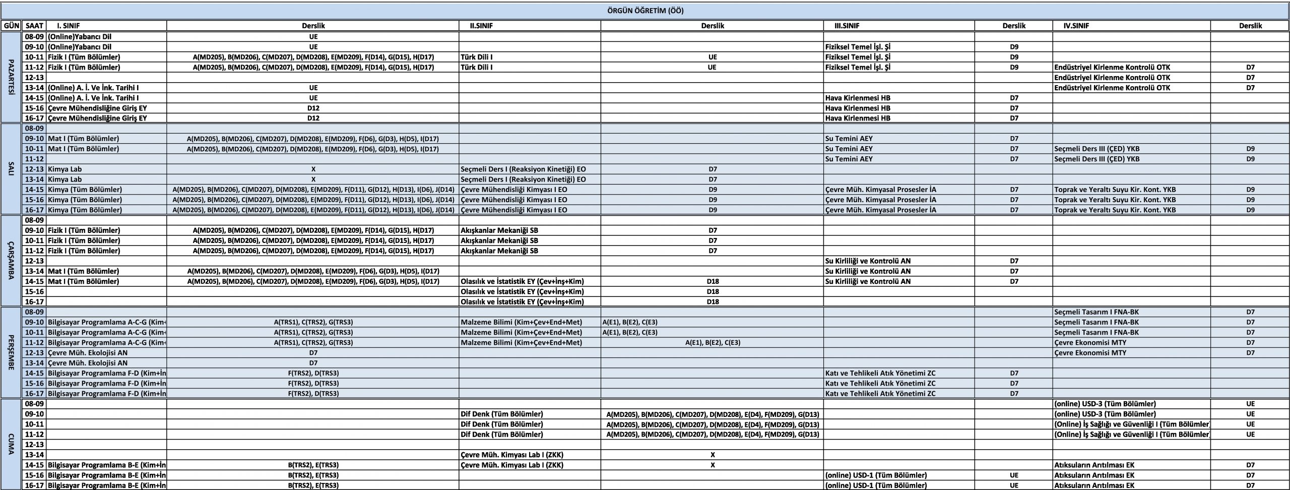 2025-26 Güz Yy. ders programı