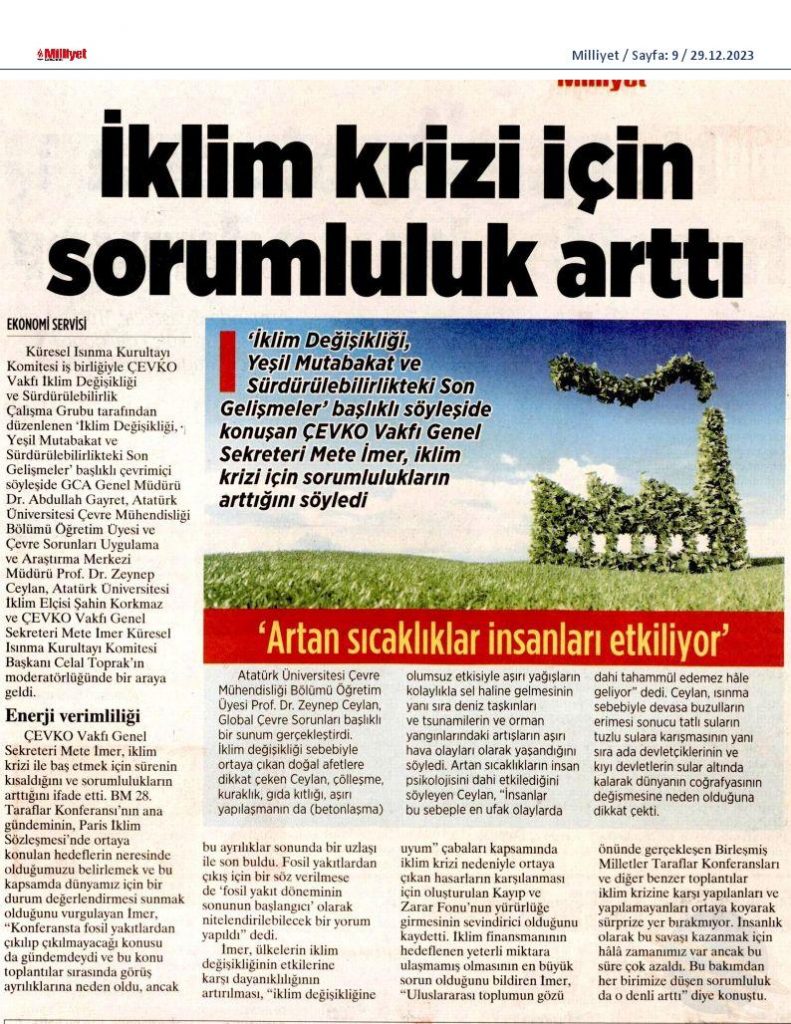 2023 yılının son ÇEVKO Vakfı Söyleşisi’nde COP28 Konferansı gündemdeydi