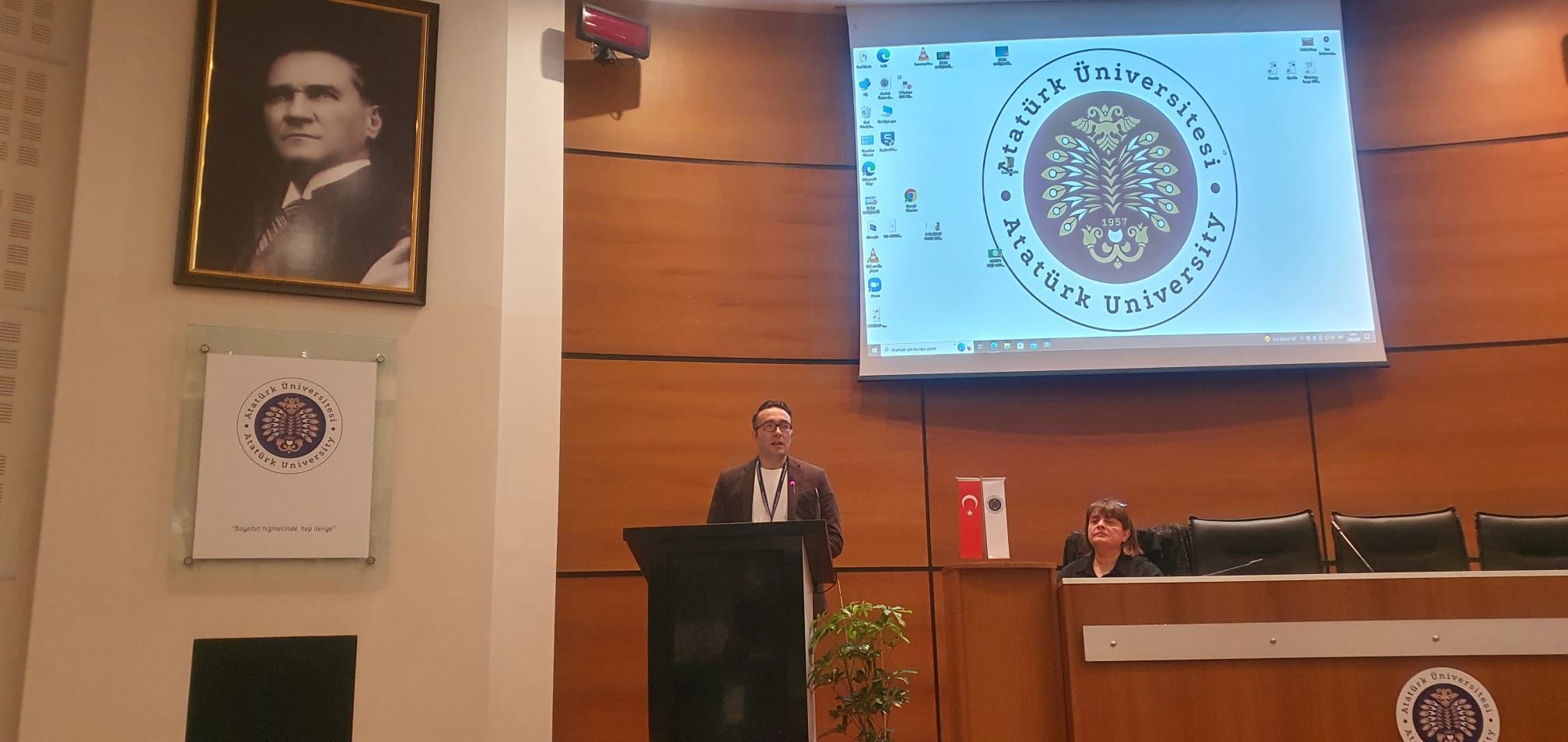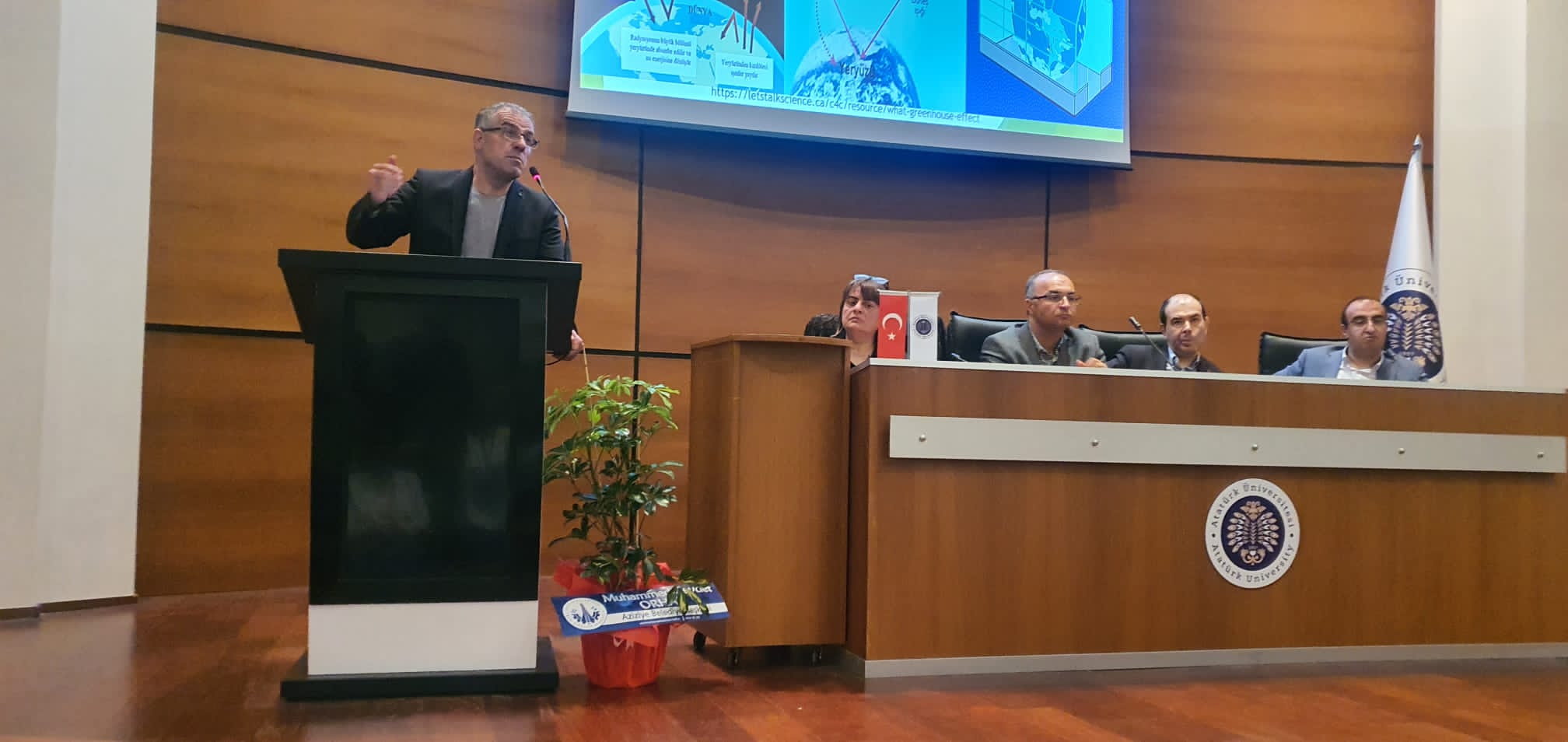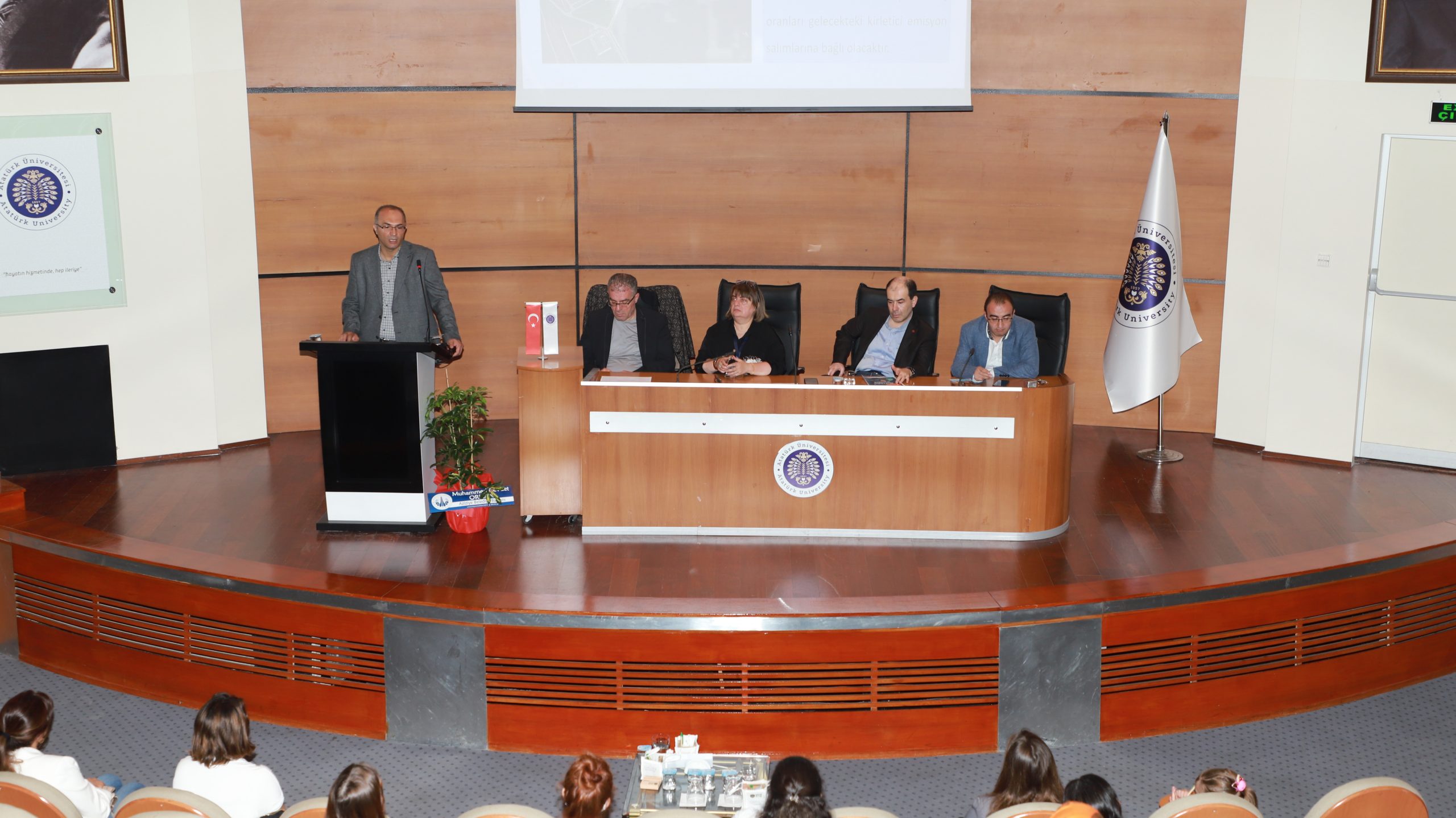 Protokol konuşmalarının ardından protokolde yer alan misafirlerin de katılımıyla Atatürk Üniversitesi Güzel Sanatlar Fakültesi Heykel Bölümü Öğretim Üyesi Prof. Dr. Mustafa Bulat ve bölümü tarafından hazırlanan “Atıktan Sanata” heykel sergisinin açılışı gerçekleştirildi. Açılış töreninde, Atatürk Üniversitesi Güzel Sanatlar Fakültesi Müzik Bilimleri Bölümü Öğretim Üyesi Prof. Dr. Özgür Sadık Karadaş ve öğrencilerince etkinlik süresi boyunca “Çevre İçin Çal” müzik etkinlikleri icra edildi. Ardından Çevre Mühendisliği Öğretim Üyeleri tarafından düzenlenen Prof. Dr. Zeynep Ceylan moderatörlüğünde “İklim Değişikliği” paneli kapsamında; Prof. Dr. Hanefi Bayraktar “İklim ve İklim Değişikliği”, Prof. Dr. Alper Erdem Yılmaz “İklim Değişikliğinin Su Kaynakları Üzerine Etkisi”, Prof. Dr. Alper Nuhoğlu “İklim Değişikliği ile Mücadele Yöntemleri ve Stratejileri”, Prof. Dr. Okan Tarık Komesli ise “Avrupa Yeşil Mutabakatı” konularını tüm yönleriyle ele aldı. TBMM’de imzalanarak taraf olunan Yeşil Mutabakat bağlamında, Çevre Şehircilik ve İklim Değişikliği Bakanlığı tarafından oluşturulan gerek “Çevre Ajansı” gerekse “İklim Elçiliği” projesi kapsamında Atatürk Üniversitesini temsilen iklim elçileri Prof. Dr. Zeynep Eren ile Çevre Yüksek Mühendisi Şahin Korkmaz süreç hakkında güncel bilgilendirmeler yaptı.