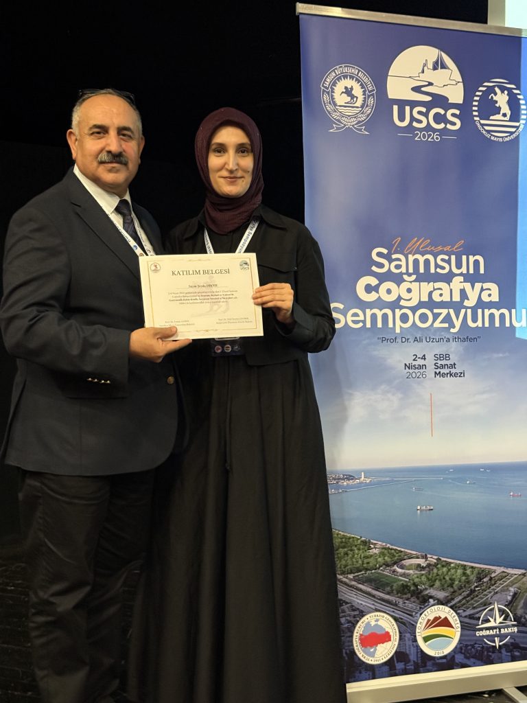 Bölümümüz öğretim üyesi Prof. Dr. İbrahim KOPAR, 2-4 Nisan 2026 tarihlerinde, Emekli Öğretim Üyesi Prof. Dr. Ali UZUN anısına gerçekleştirilen I. Ulusal Samsun Coğrafya Sempozyumuna “Erzincan Depresyonunda Aletsel Dönemden Günümüze Büyüklüğü (Mw) ≥4 Depremlerin Kernel Yoğunluk Analiziyle Değerlendirilmesi” konulu bildiriyi Deprem Oturumunda sözlü olarak sunmuş ve sempozyumun 9. Oturumunda da oturum başkanlığı görevini üstlenmiştir. Sempozyuma 38 üniversiteden 141 katılımcı bildirileriyle iştirak etmiştir. Sempozyumun 3. Gününde Kızılırmak Deltasında gözlemler yapılarak sahanın uzmanları tarafından bilgilendirme yapılmıştır.