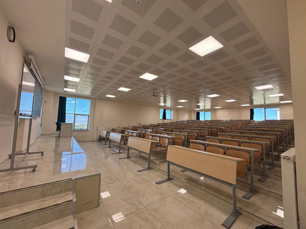 Bölümümüz dersleri Edebiyat Fakültesi’nin 3. Kat batı ayrımındaki ofis, derslik ve laboratuvarda işlenmektedir.  Bölümümüz tarafından kullanılan 4 derslik bulunmaktadır. Bu sınıflardan üçü 70 öğrenci kapasitesine sahip olup diğeri ise Amfi niteliğindedir. Amfi 135 öğrencinin derslere katılabileceği büyüklükte bir dersliktir. Öğrenci sayısının yüksek olduğu, başka bir deyişle tüm öğrencilerin almaları gereken zorunlu dersler büyük sınıfta yapılmaktadır. Sınıf ihtiyacı oluşması durumunda yönetim tarafından ihtiyaca uygun başka sınıflar da tedarik edilmektedir. Bölümümüz öğretim üyeleri gerekli gördükleri durumlarda derslerinde görsel malzeme kullanmaktadırlar. Bu amaçla sınıflarımızın tümü bilgisayar ile sunu yapılmasına uygun projeksiyonlar ile donatılmıştır.
