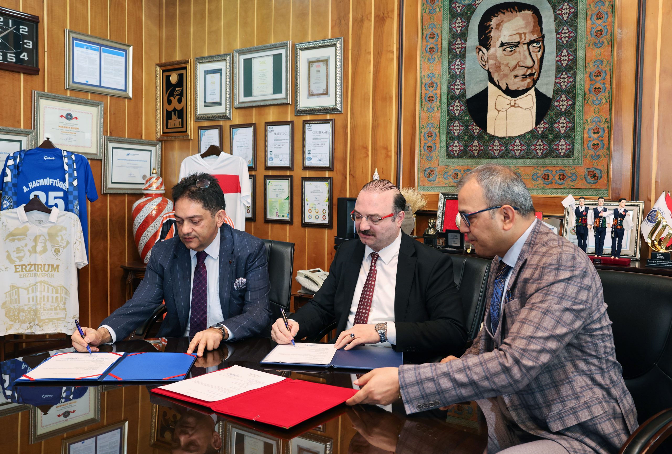 Dezavantajlı bireylerin toplumsal yaşama kazandırılması ve istihdam olanaklarının artırılması amacıyla Atatürk Üniversitesi, Erzurum Cumhuriyet Başsavcılığı ve Erzurum Ticaret Borsası (ETB) arasında önemli bir iş birliğine imza atıldı. “Dezavantajlı Grupların Hizmet Sektörüne Kazandırılması Projesi” kapsamında hazırlanan protokol; Atatürk Üniversitesi Rektörü Prof. Dr. Ahmet Hacımüftüoğlu, Erzurum Cumhuriyet Başsavcısı Adem Aydemir ve Erzurum Ticaret Borsası Yönetim Kurulu Başkanı Hakan Oral’ın katılımıyla imzalandı.