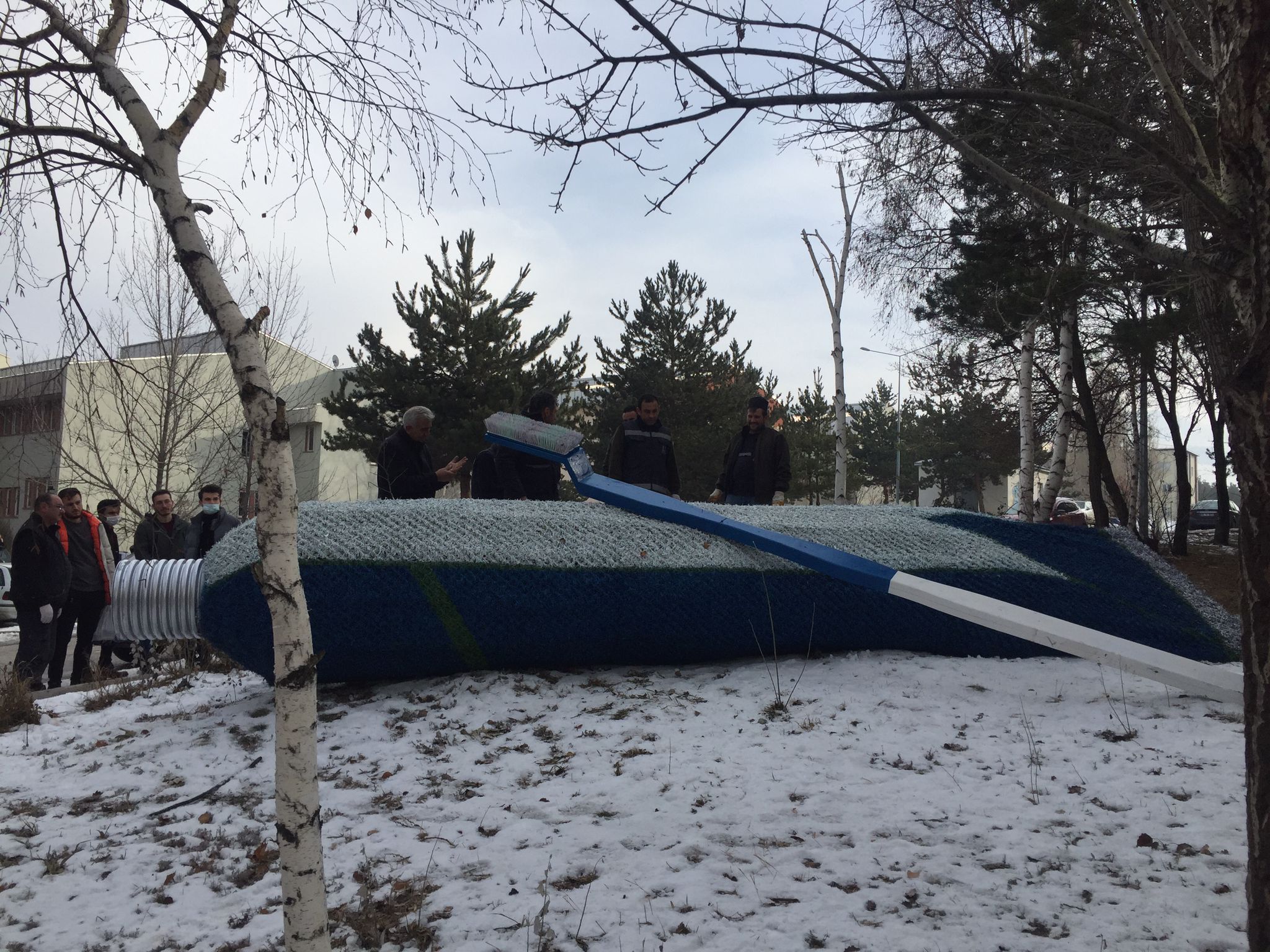 Fakültemiz bahçesine diş macunu ve diş fırçası maketi yerleştirildi.
