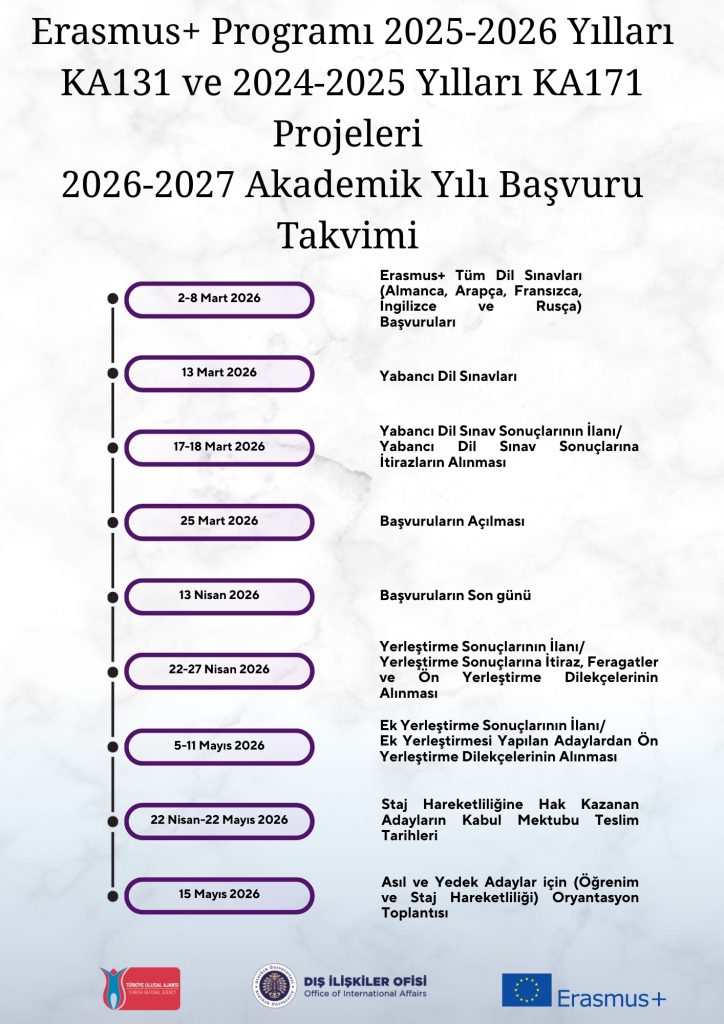 Erasmus+ Öğrenci Hareketlilikleri Başvuru Takvimi