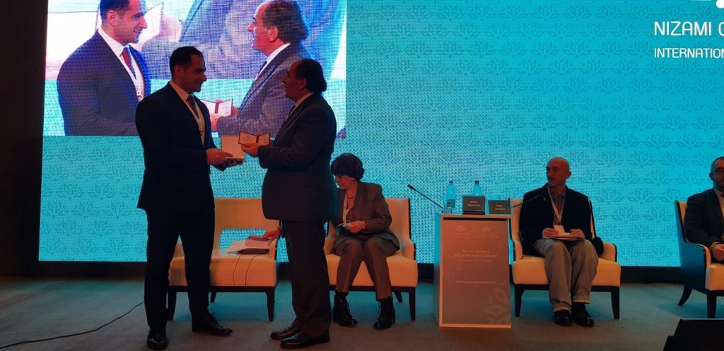 Fars Dili ve Edebiyatı Bölümü Başkanı Prof. Dr. Nimet YILDIRIM “Nizami Gencevi Yılı” çerçevesinde 24-27 Kasım tarihlerinde Bakü’de düzenlenen “Uluslararası Nizami Gencevi Forumu’na adlı panelde “Nizami Gencevi ve İskendernâme’si adlı bir bildirisini sundu. Panelde Genceli Nizami konusunda bölümümüzde şimdiye kadar yapılmış çalışmalar ve özellikle bundan sonra başta Genceli Nizami olmak üzere eserlerini Farsça yazmış Türk dünyasının ünlü şairleri ve yazarlarının her biri başyapıt değerindeki eserlerini Türkçe’mize kazandırılması konusunda bakan yardımcısı Sayın Elnur Aliyev Bey ile çok önemli görüşmelerde ve değerlendirmelerde bulunuldu. Panelin sonunda Prof. Yıldırım’a Azerbaycan Medeniyet Nazırlığı (Kültür Bakanlığı) tarafından Nizami Madalya’sı verildi.