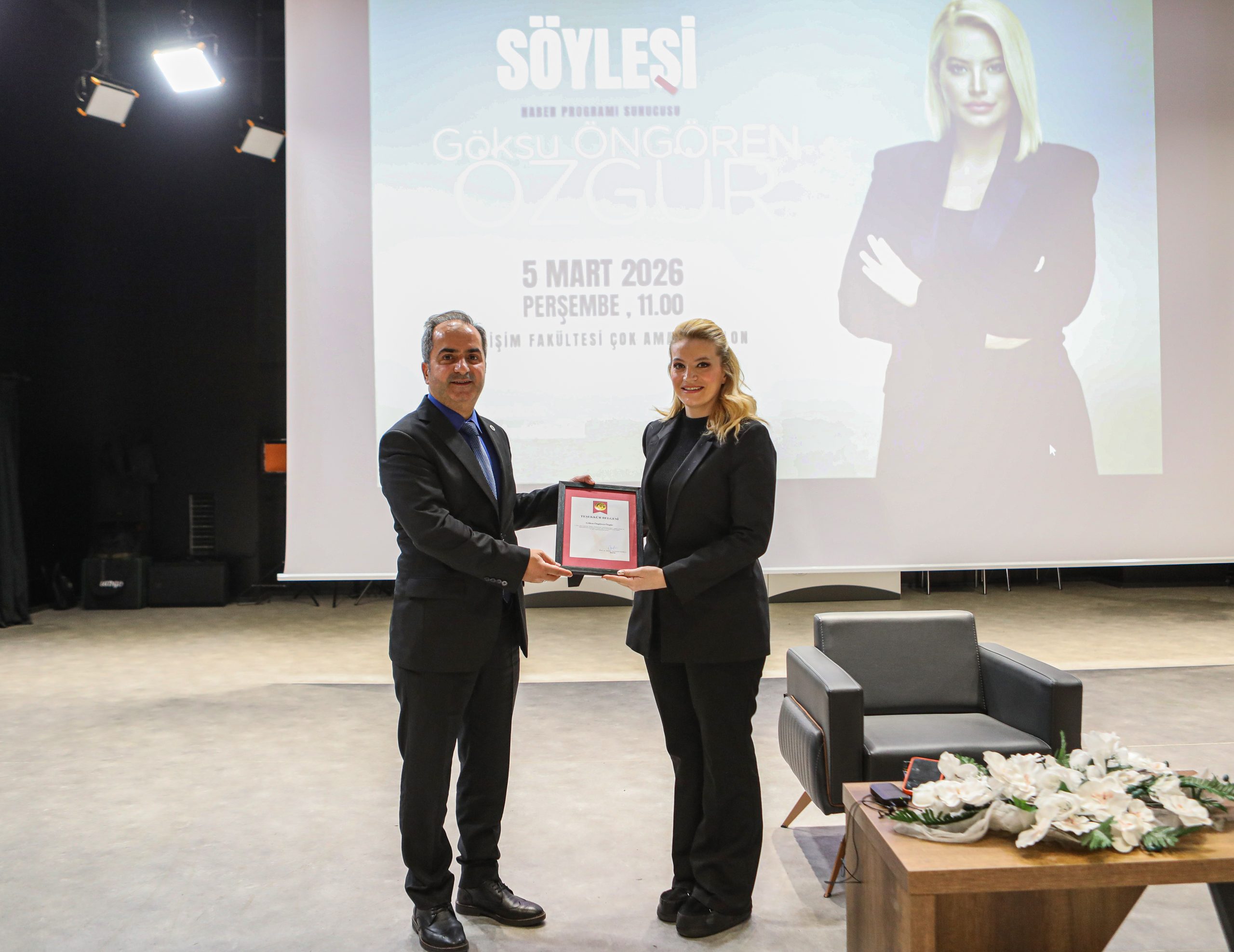 Öğrencilerin yoğun ilgi gösterdiği söyleşi programında, medya sektöründeki güncel gelişmeler, televizyon haberciliği, dijital medya ve gazetecilikte dönüşen üretim süreçleri üzerine kapsamlı değerlendirmeler yapıldı. Program, öğrencilerin yönelttiği soruların yanıtlanmasının ardından günün anısına çekilen hatıra fotoğrafı ile sona erdi.