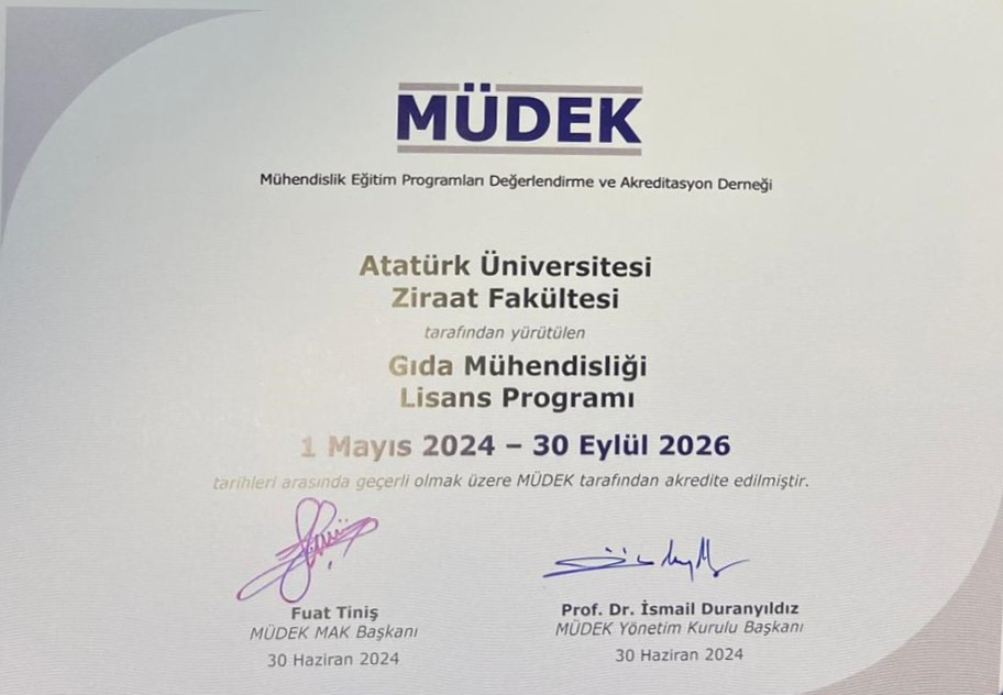 Gıda Mühendisliği Bölümü MÜDEK tarafından Akredite edildi.