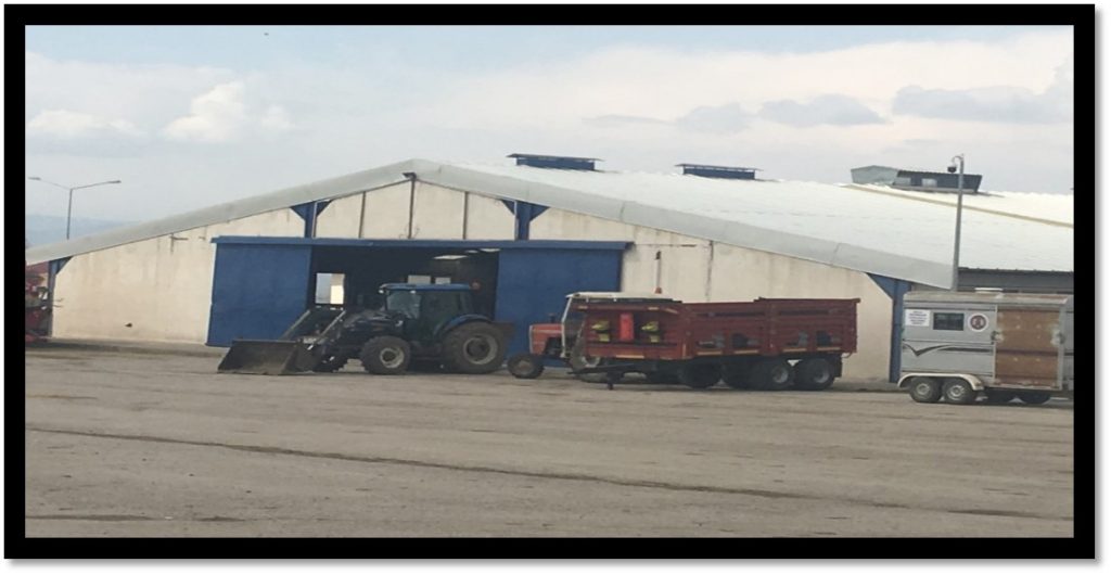 İdare binası, sağım binası, garaj, yem deposu, silolar.