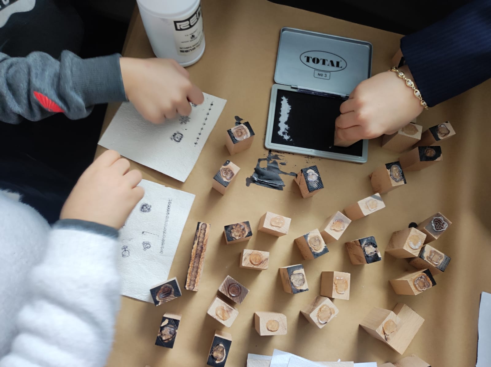 Etkinliğin en anlamlı kısmında ise öğrencilerimiz, “Sıfır Atık” projemiz kapsamında atık kağıtlardan yeniden üretilen kağıtlar üzerine kendi baskılarını yaptılar. Bu uygulama sayesinde hem geri dönüşümün doğa için önemini yaşayarak kavradılar hem de geleneksel yöntemlerle ilk baskılarını üretmenin heyecanını yaşadılar.