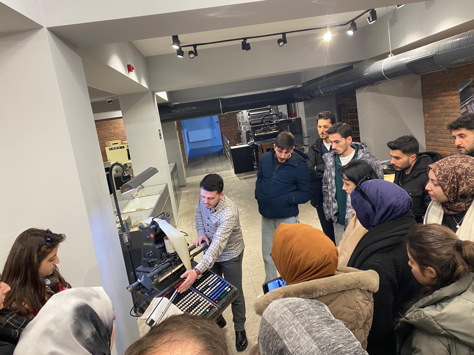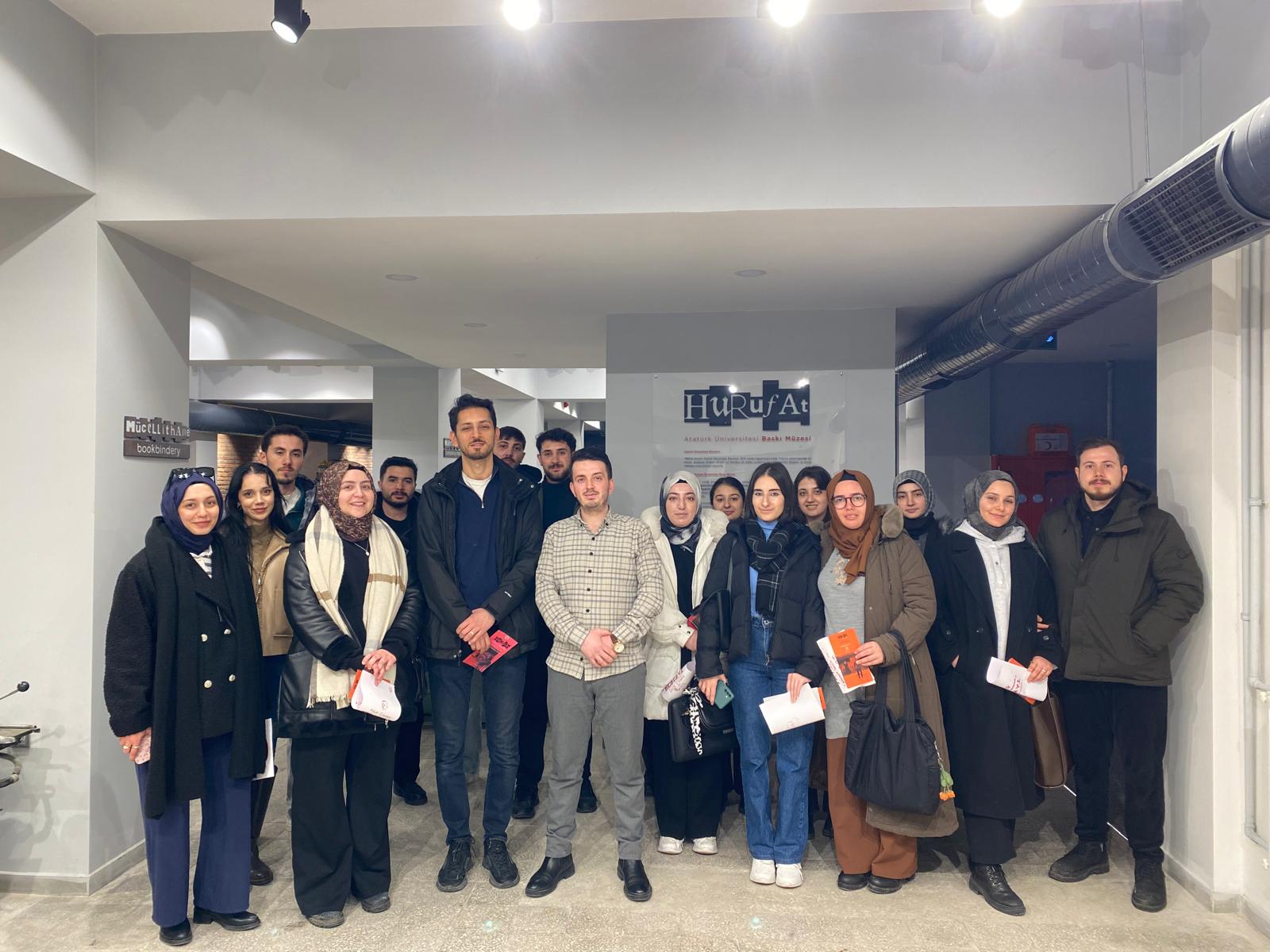 Atatürk Üniversitesi Edebiyat Fakültesi Bilgi ve Belge Yönetimi Bölümü 3. sınıf öğrencileri, müfredat kapsamında yürütülen teknik gezi programı dahilinde Hurufat Baskı Müzesi’ni ziyaret etti. Arş. Gör. Dr. Mehmet Kürşat Değer danışmanlığında gerçekleşen ziyarette, öğrencilere matbaacılık tarihi ve baskı teknolojilerinin gelişimi hakkında kapsamlı bilgiler verildi.